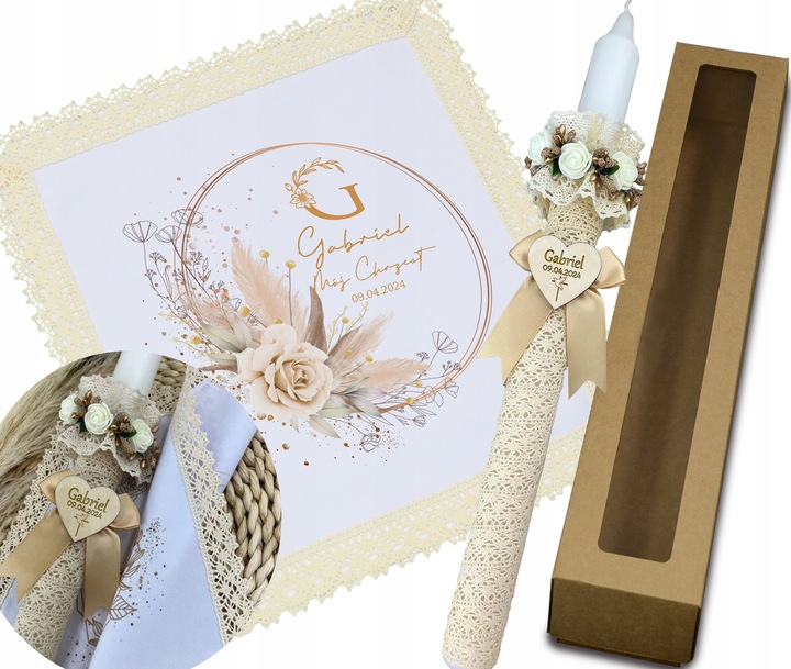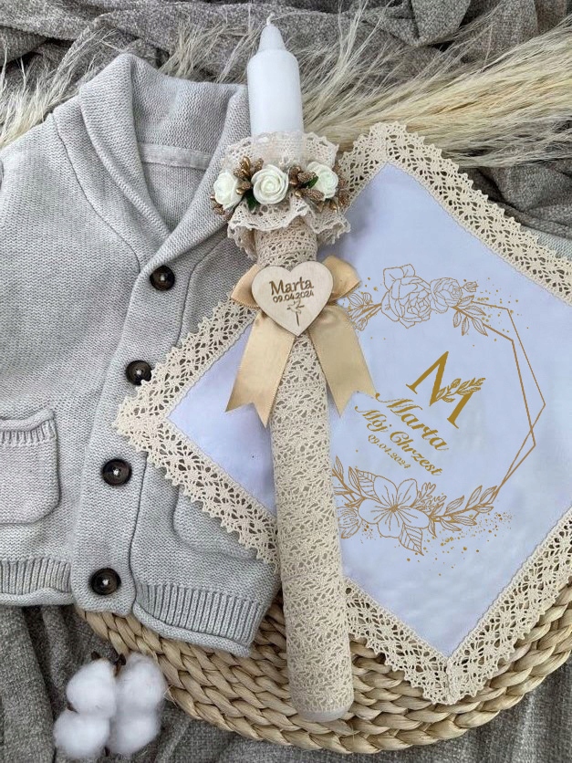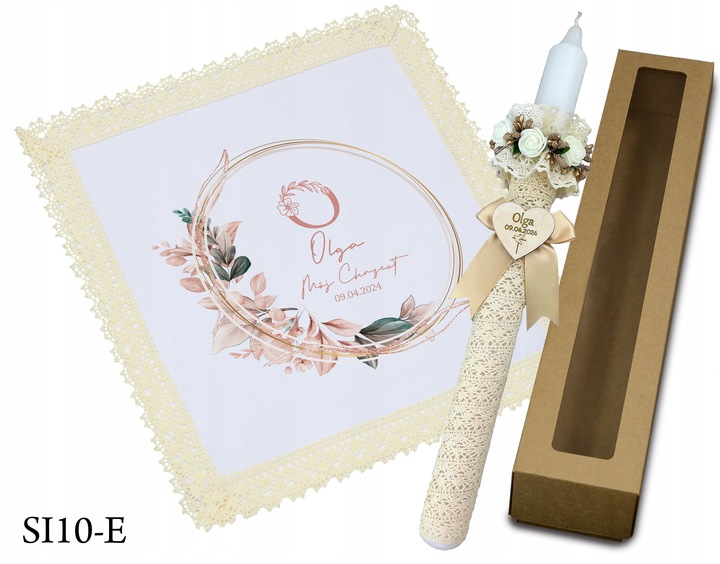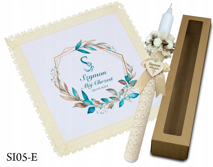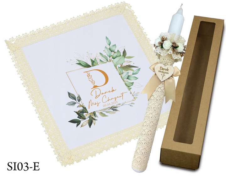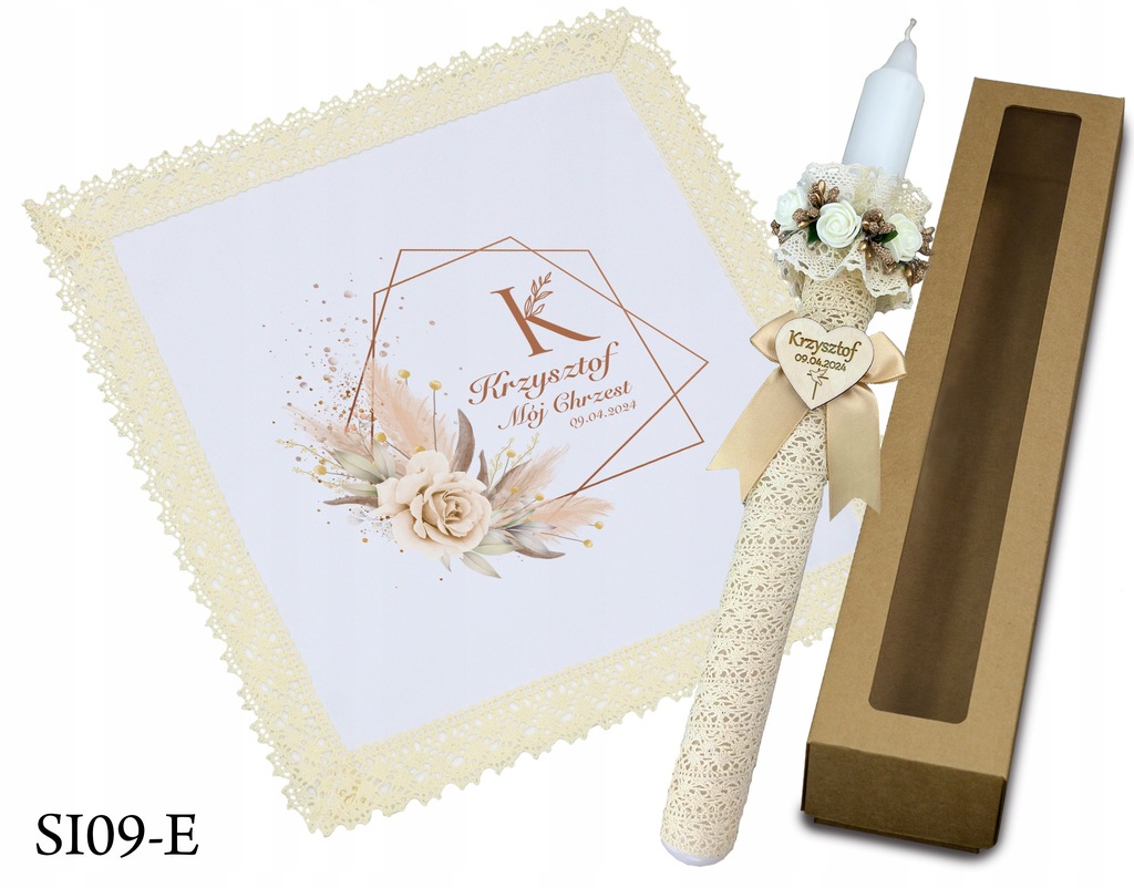 Свічка для хрещення білий халат і свічка для хрещення коробка мережива e ініціал