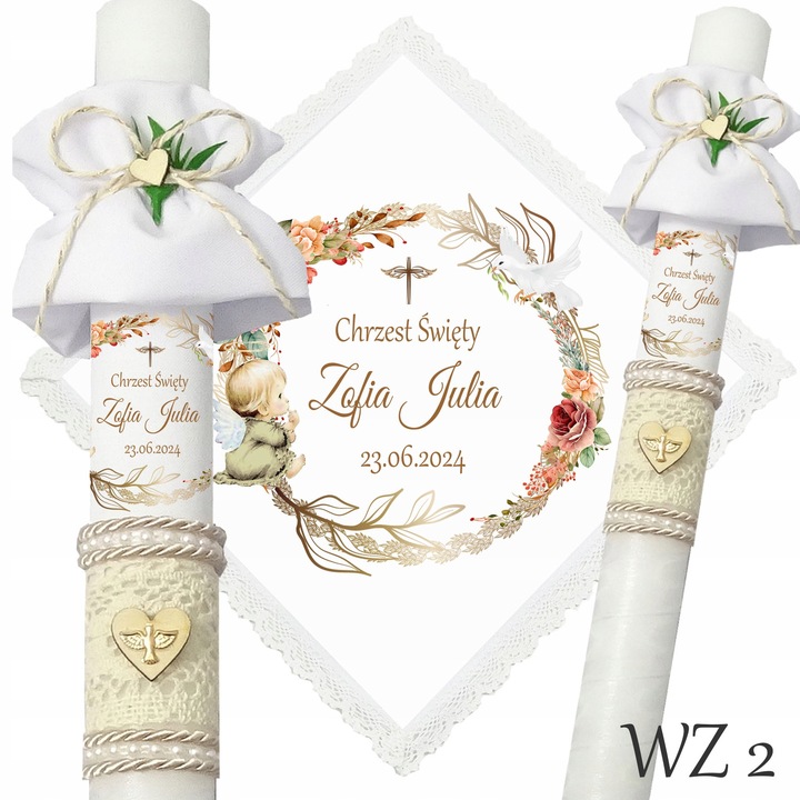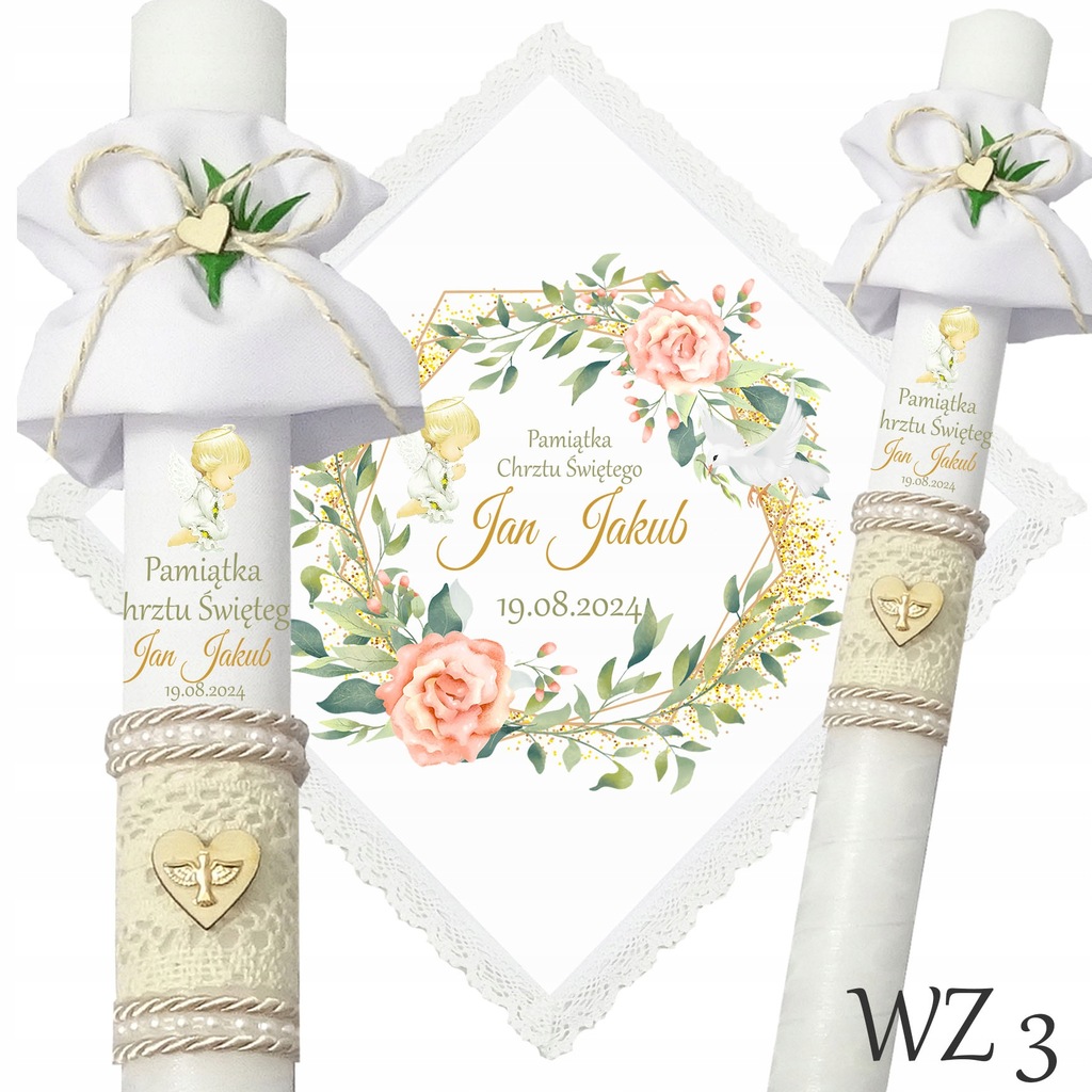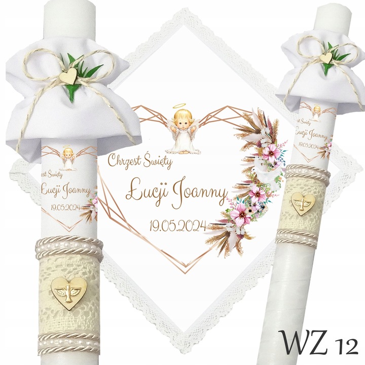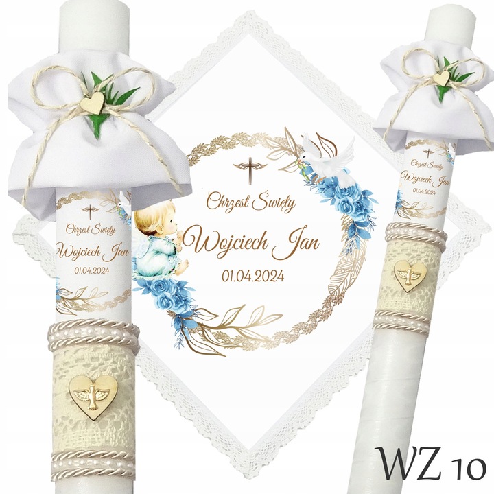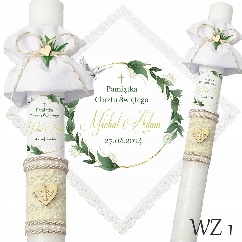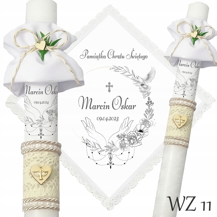 ми представляємо незвичайний набір одягу і свічки для хрещення , створений для урочистої події в житті кожної дитини. Халат виготовлений з білого матеріалу і оброблений бавовняним мереживом, що надає йому елегантність і ніжність. Свічка прикрашена вручну, а на ній нанесений відбиток з імʼям дитини, що робить її унікальним і неповторним сувеніром.свічка має бежеву мотузку, на її поверхні-мереживо і деревʼяне серце, на якому зображена емблема Святого Духа золотого кольору. Інша частина свічки обгорнута шифоновою білою стрічкою. Все це упаковано в картонну білу коробку з написом "сувенір Святого Хрещення", а до комплекту ми додаємо ще й матеріальну пільгу. Цей унікальний набір одягу і свічки обовʼязково підкреслить свято Хрещення і посилить емоції і спогади, повʼязані з цією особливою подією.