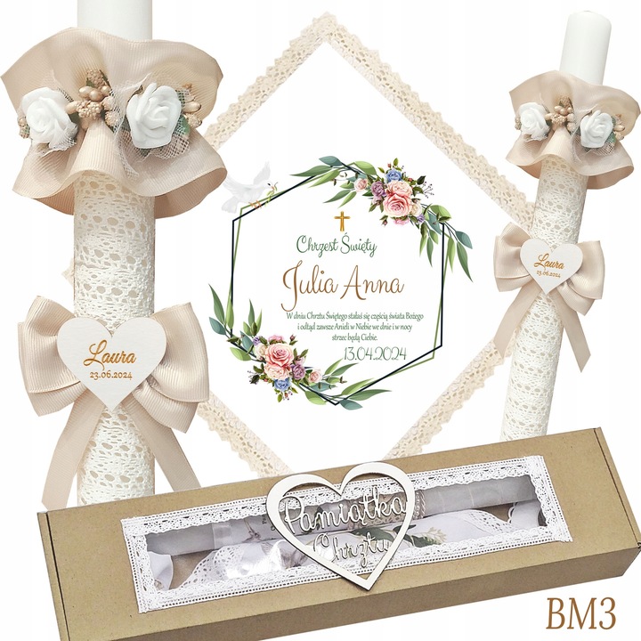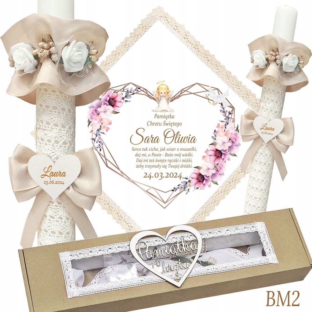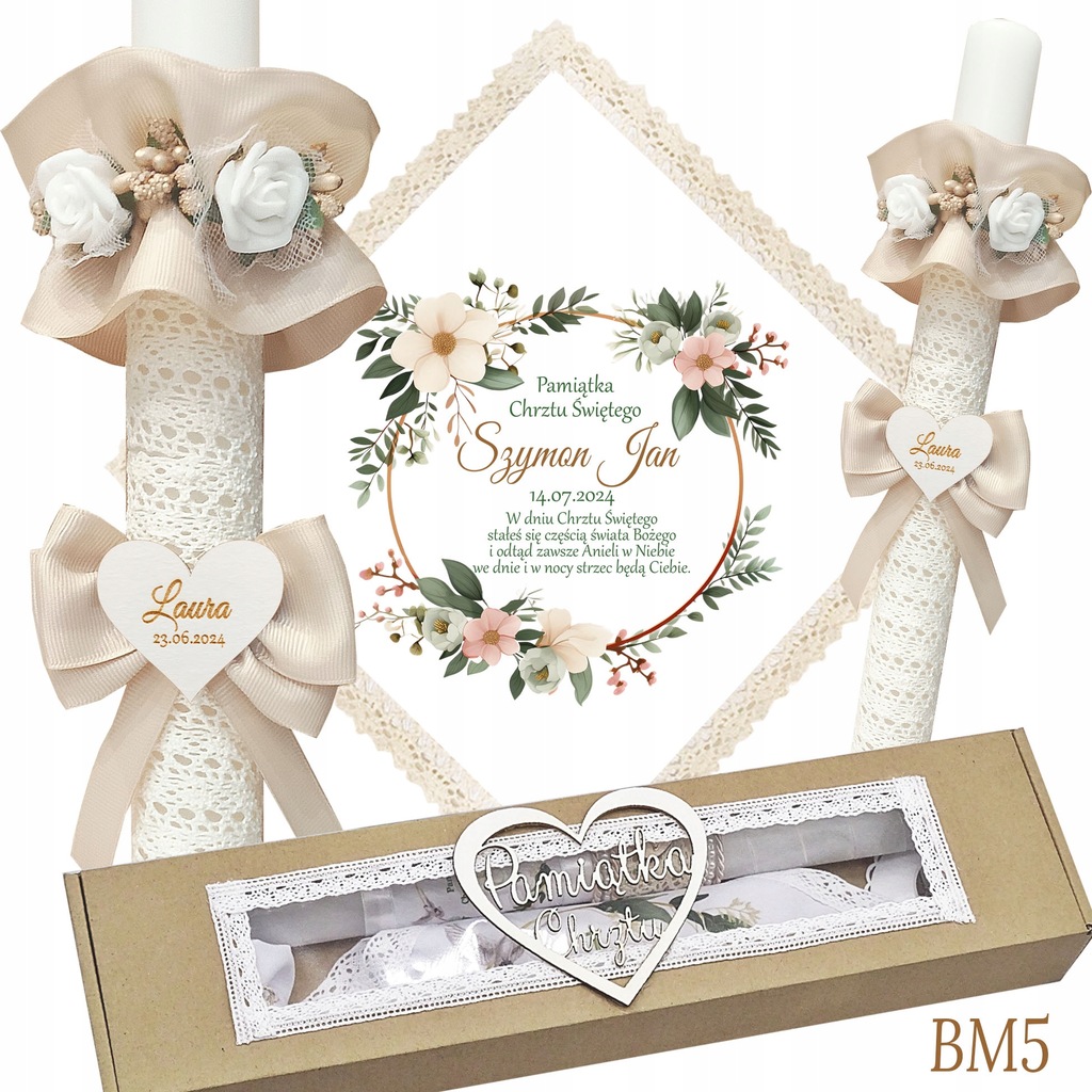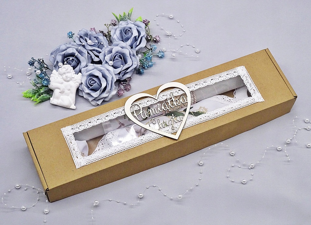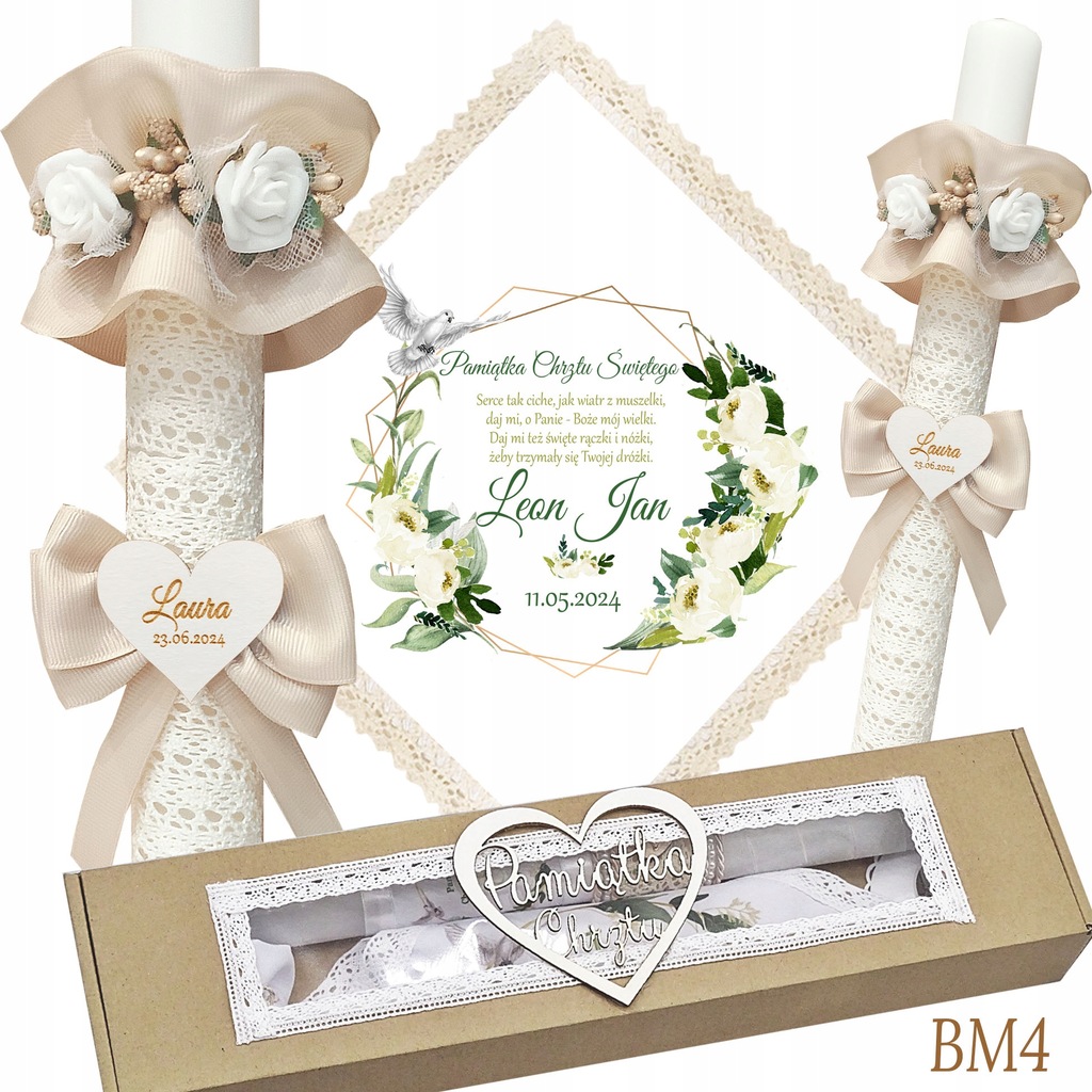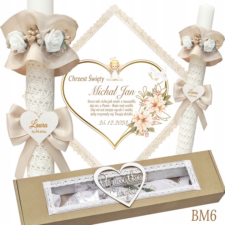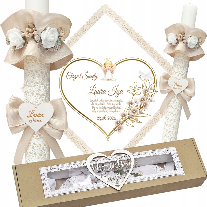 ми представляємо незвичайний набір одягу і свічки для хрещення , створений для урочистої події в житті кожної дитини. Халат виготовлений з білого матеріалу і оброблений бавовняним мереживом, що надає йому елегантність і ніжність. Свічка прикрашена мʼяким бежевим бавовняним мереживом ручної роботи. Вигравіруване серце знаходиться на бежевому матовому бантом. все це упаковано в картонну коробку, а в комплект ми додаємо ще матеріал профіт. Цей унікальний набір одягу і свічки обовʼязково підкреслить свято Хрещення і посилить емоції і спогади, повʼязані з цією особливою подією.