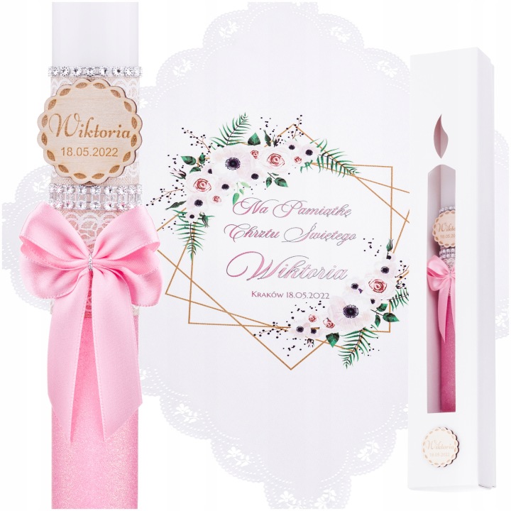 СВІЧКА ДЛЯ ХРЕЩЕННЯ ХРЕЩЕННЯ САТИН ГРАВЕР + ПОДАРУНКОВА КОРОБКА