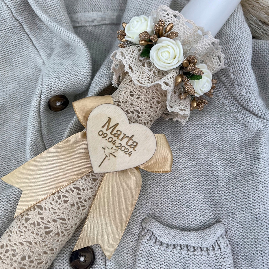 Хрестильна свічка є дуже оригінальним і незабутнім сувеніром Святого Хрещення а також ви будете використовувати її для першого причастя і наступні роки.