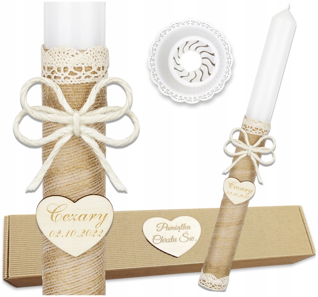 Eleganckie️елегантна коробка для зберігання свічки, прикрашена вигравіруваним серцем з написом "сувенір для хрещення Святого". За запитом ми можемо змінити напис на" сувенір Святого Причастя "