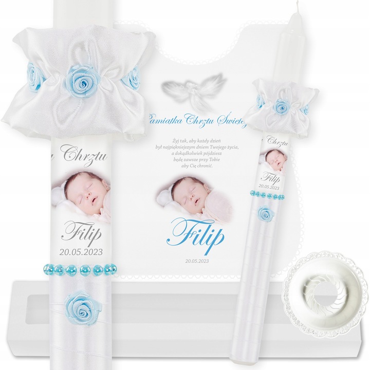 - ✅ Свічка містить Фото разом з імʼя + дата chrztu dziecka