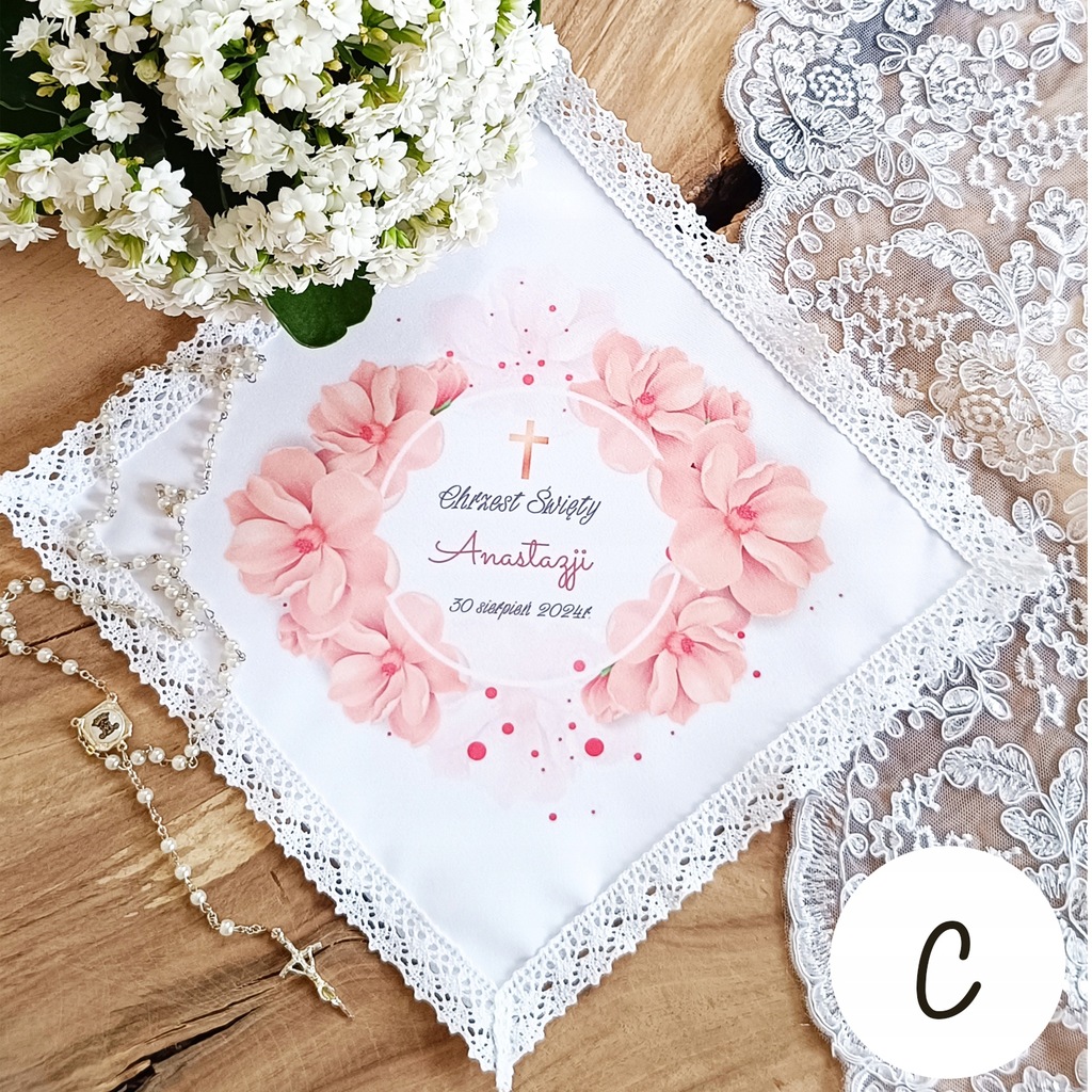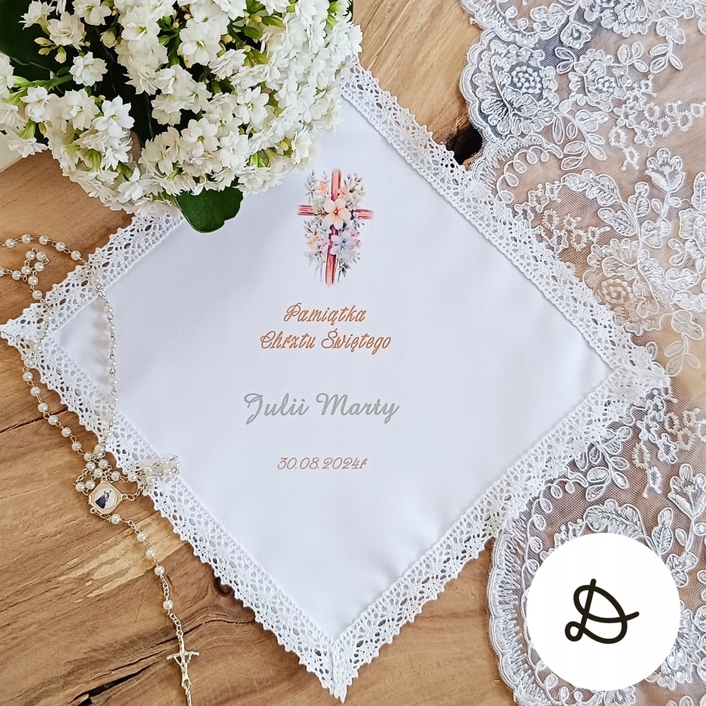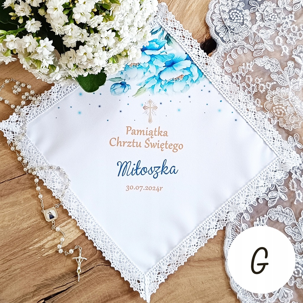 - персоналізований одяг з унікальною графікою. Оброблений бавовняним білим мереживом, розміром 27 см х 27 см.< / Лі>