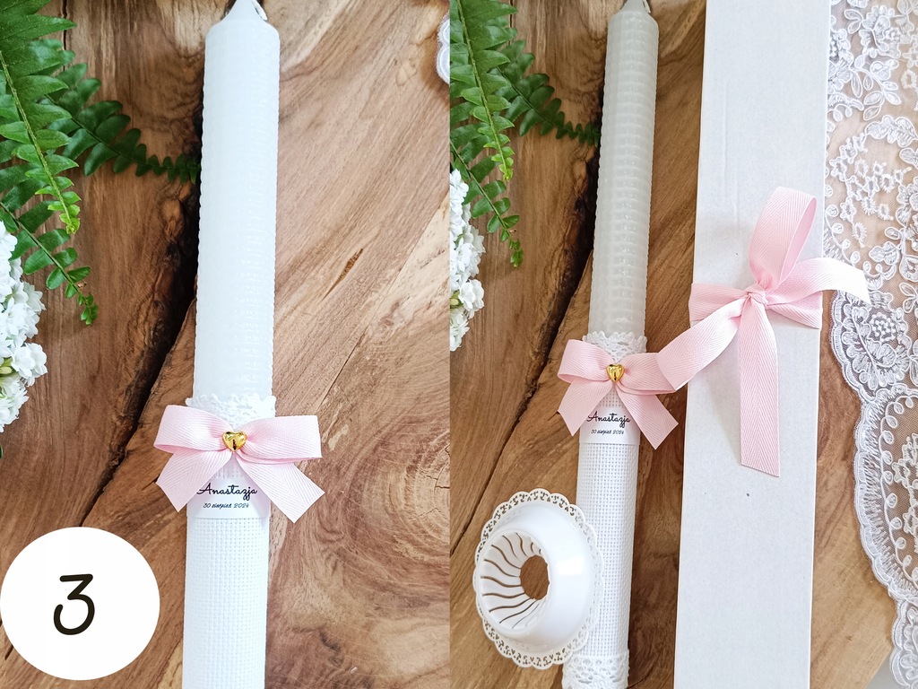 - вафельна Свічка прикрашена білою тканиною і мереживом з тонким бавовняним бантом ручної роботи в трьох кольорах вулик>