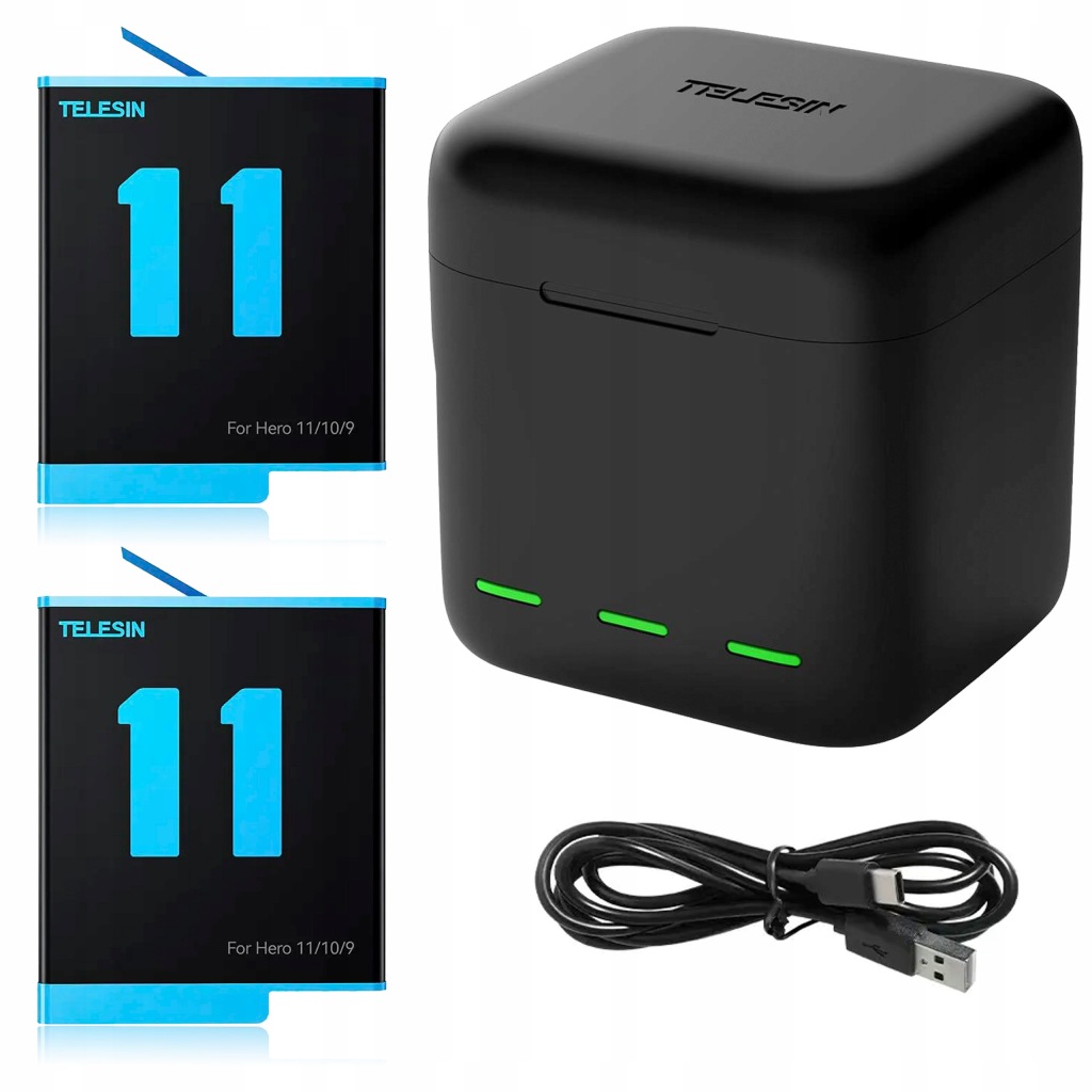 зарядний пристрій Telesin 3 в 1 дозволяє швидко заряджати батареї Gopro Hero 3 11 / 10 / 9 одночасно. легкий і компактний - ви завжди можете мати його під рукою. Комплексна система безпеки гарантує, що її використання не повʼязане з будь-якими ризиками. Більш того, вбудовані світлодіодні індикатори в реальному часі повідомляють вам статус зарядки. Додатковою перевагою зарядного пристрою є силіконовий відсік, в якому можна зберігати до 2 карт памʼяті TF. У комплекті ви також знайдете 2 батареї для GoPro Hero 11 / 10 / 9.