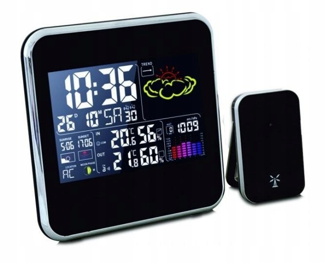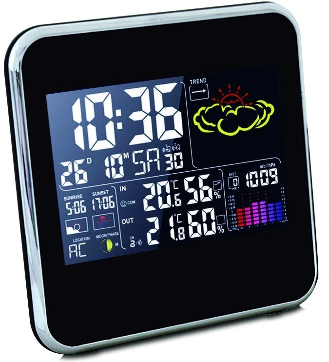 - барометр: - абсолютний тиск в гПа / Мб або мм рт. ст. - Історія змін тиску за останні 12 год-прогноз погоди-анімовані символи - тенденція погоди-підсвічування РК-дисплея синього кольору.Чи>