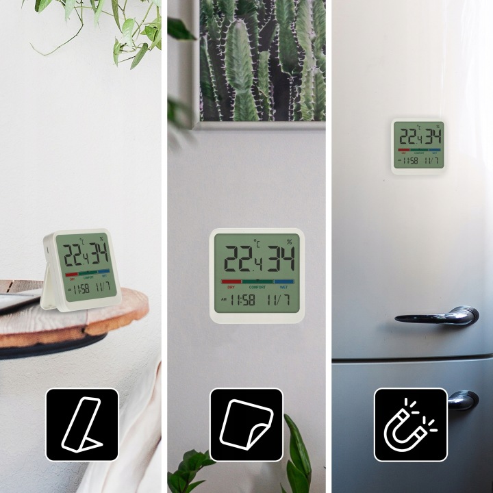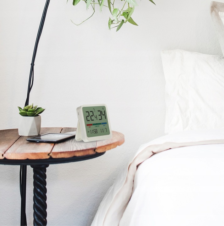 завдяки вбудованій ніжці термометр буде надійно встановлений на підвіконні, столі або тумбочці.