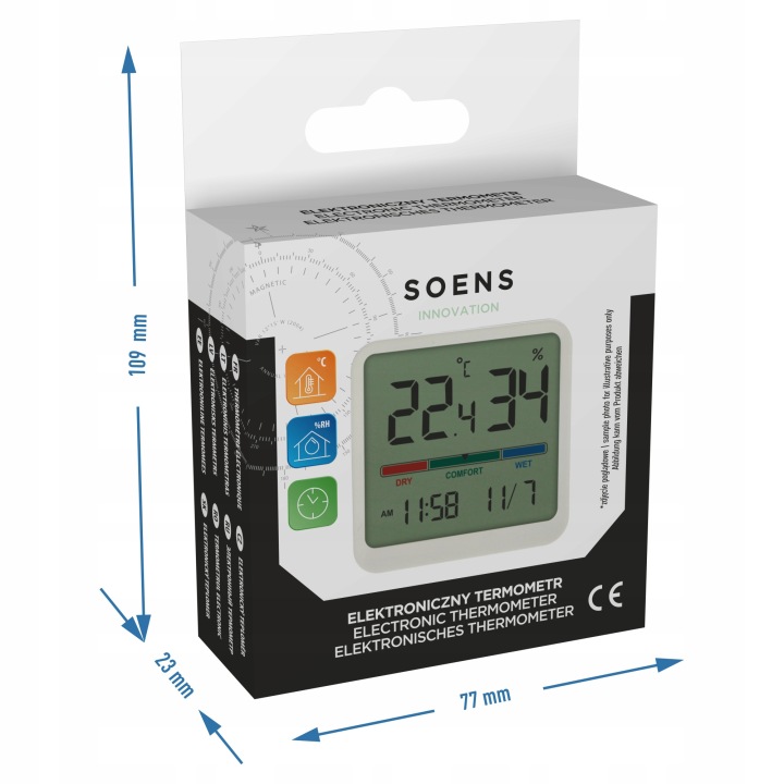 цей багатофункціональний електронний термометр марки Soens-це пристрій, який допоможе вам забезпечити максимальний рівень комфорту у вашому середовищі. Тримайте температуру "на виду" - в кожній кімнаті, яка важлива для вас.