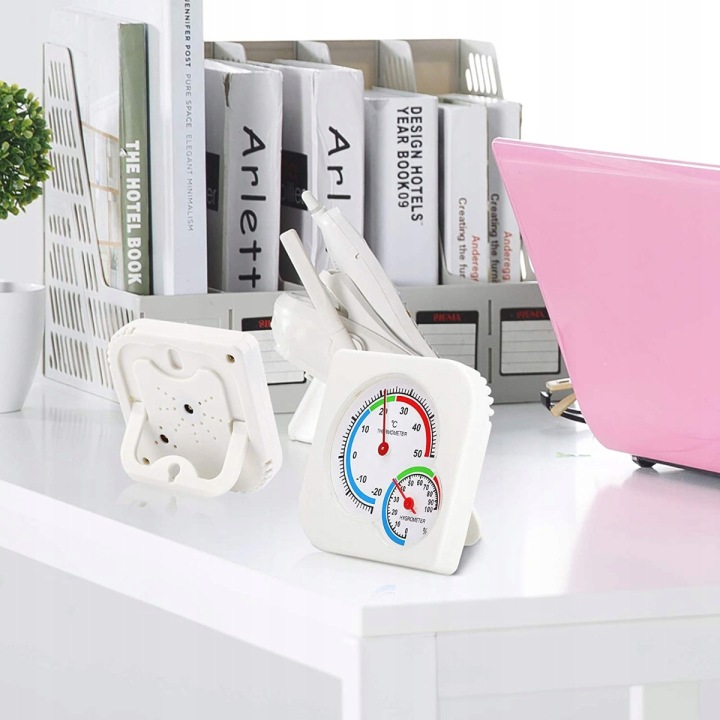 ✅ термометр з вбудованим вологоміром відрізняється хорошим дозволом вимірювання і швидкістю відгуку. Просто закріпіть пристрій на стіні або поставте на плоску поверхню, використовуючи вбудовану висувну ніжку.