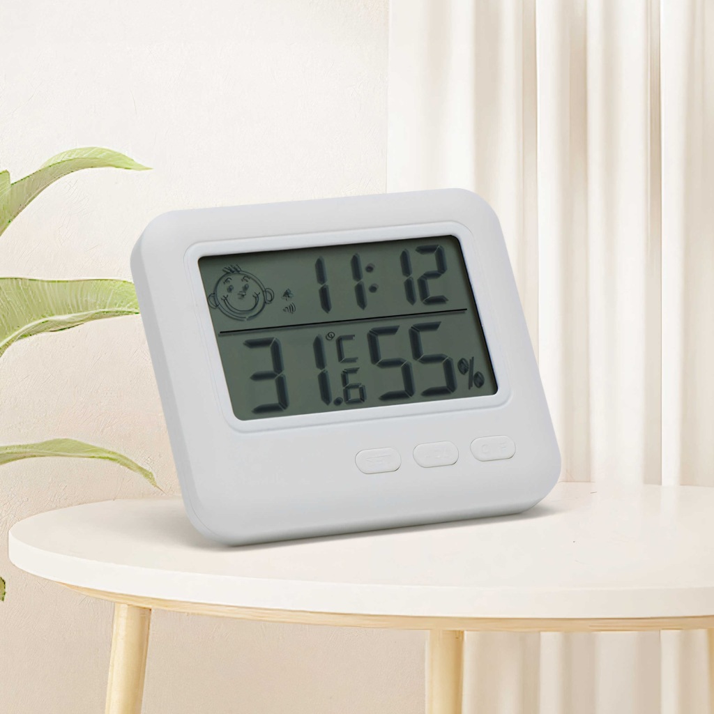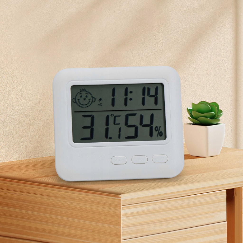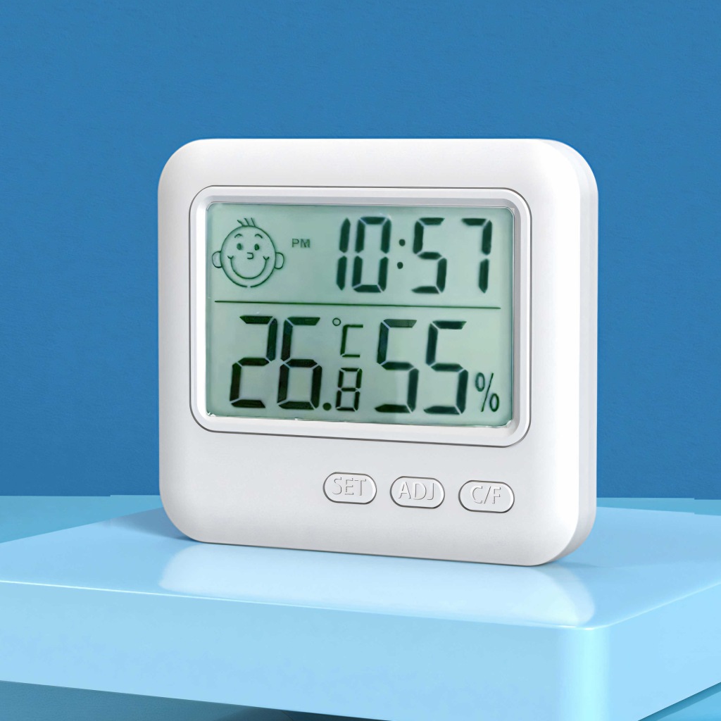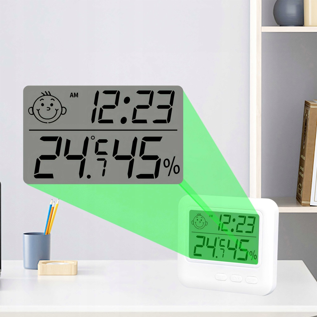 сучасний багатофункціональний кімнатний термометр з чітким і чітким дисплеєм інтуїтивно зрозумілий і простий у використанні. продукт має чіткий дисплей, з якого дуже легко читати всі значення, що нас цікавлять. Відмінно підійде в будь-якому будинку, квартирі, офісі. за допомогою підставки ви можете розмістити її в будь-якому місці, на столі, столі, полиці.
