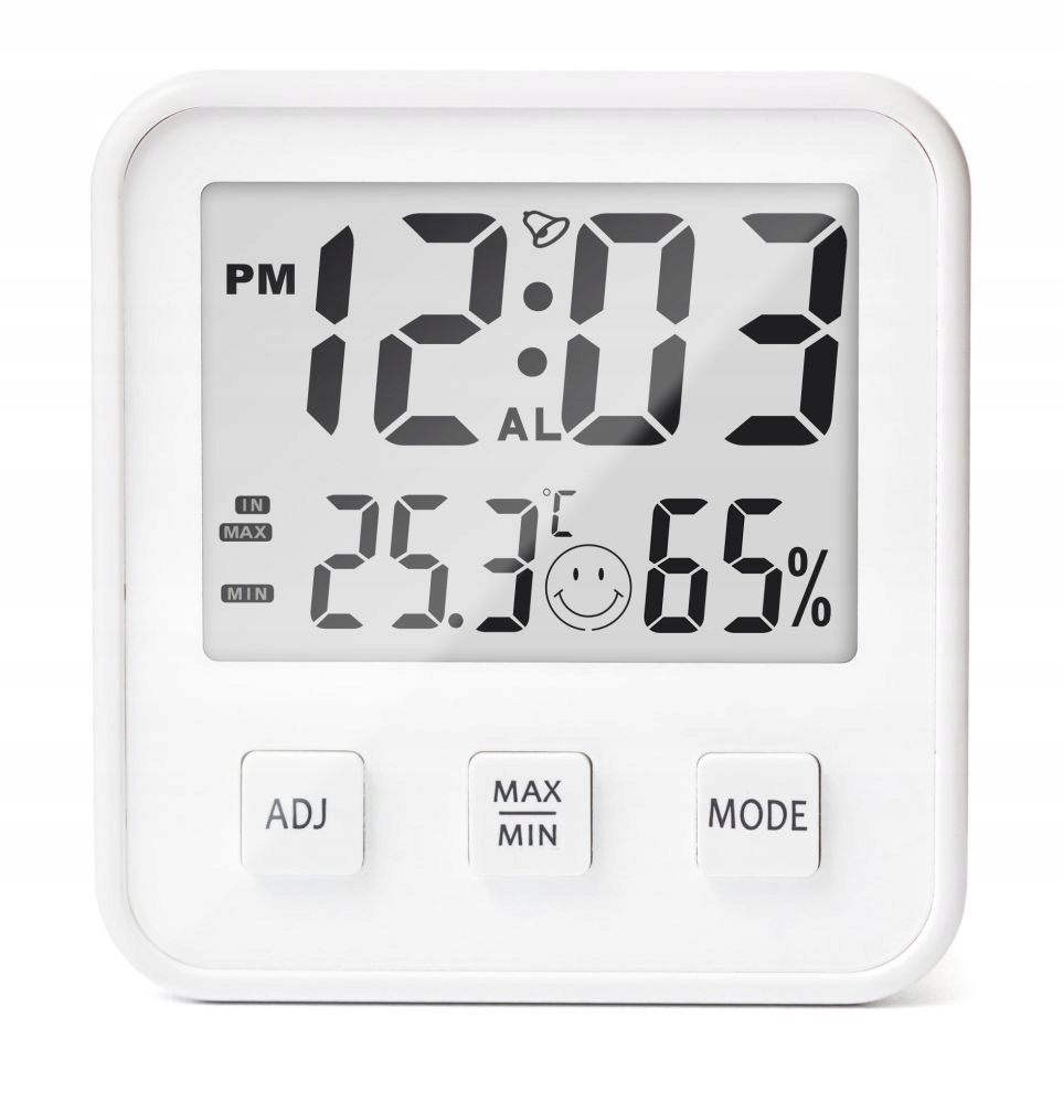 - відображення символів комфорту:символ веселого смайлика зʼявляється, коли температура в приміщенні знаходиться в діапазоні 18 C - 25 C (64 f - 77 F), а відносна вологість повітря становить 40-65%. В іншому випадку зʼявляється символ сумного смайлика.