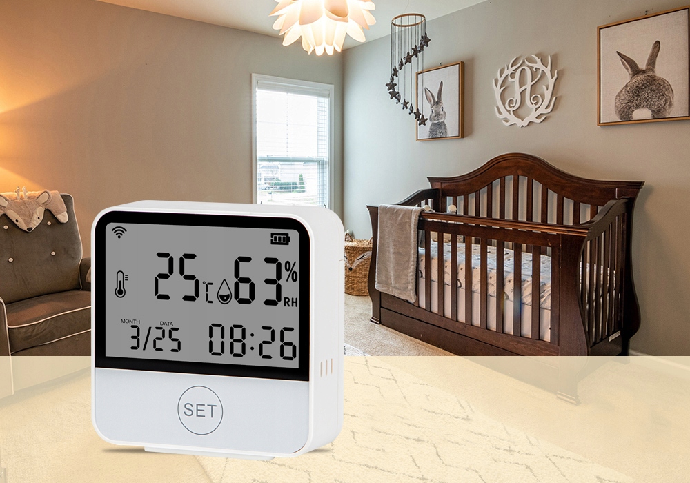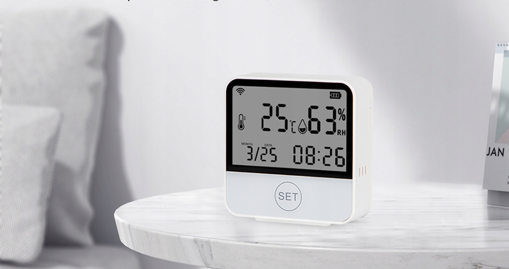датчик температури і вологості можна повісити і розмістити в будь-якому місці, не займаючи місця , на тумбочках, столах, офісах, з підвісними отворами ззаду, на стінах або за дверима.