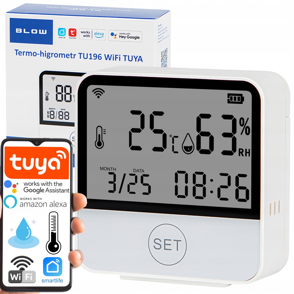 інтелектуальний термо-гігрометр BLOW призначений для взаємодії з найпопулярнішими додатками, що пропонують голосове управління ( Amazon Alexa, Google Home, IFTTT), що ще більше спростить роботу і модернізує інтелектуальне управління вашим будинком. Крім того, у вас є можливість отримувати поточні сповіщення з ініціалізованих пристроїв, що гарантує безпеку та постійний контроль над вашими продуктами.