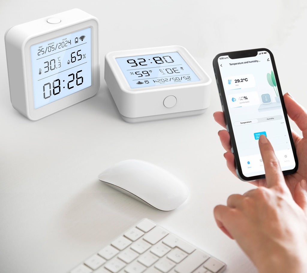 датчик температури і вологості можна повісити і розмістити в будь-якому місці, не займаючи місця , на тумбочках, столах, офісах, на стінах або за дверима.