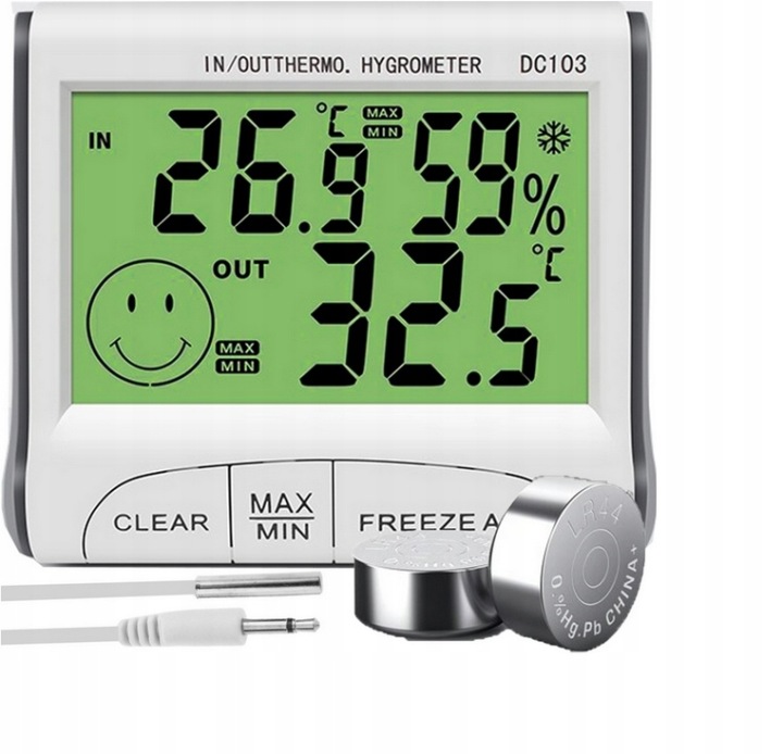 продукт покаже нам поточну температуру і вологість в приміщенні,а також додаткову температуру зовнішнього повітря завдяки зонду, стійкому до атмосферних впливів.