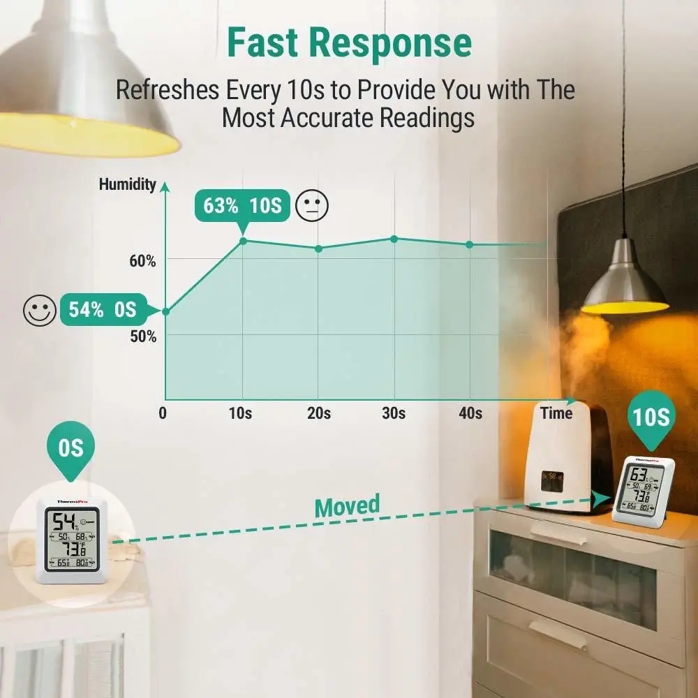 здоровий Дім і навколишнє середовище: гігрометр з термометром і монітором температури і вологості забезпечує належний контроль вологості в приміщенні, що має важливі переваги для шкіри, алергенів та інших переваг для здоровʼя. його також можна використовувати як термометр для холодильника, термометр для морозильної камери, гігрометр для сигар та багато іншого!