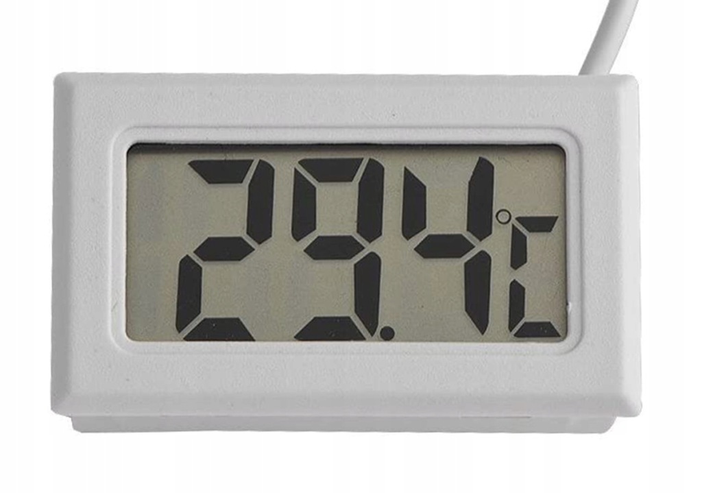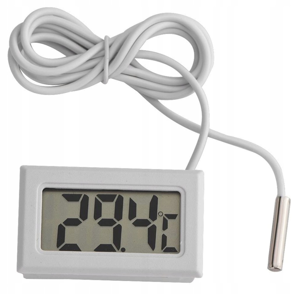 електронний термометр з великим РК-дисплеєм і зондом на довгому кабелі. Зонд (датчик) може бути розміщений в основному в будь-якому місці, наприклад, в акваріумі, тераріумі, холодильнику, морозильній камері, теплиці і т. д. скрізь, де нам потрібно точне вимірювання температури в межах від -50 до 70 градусів Цельсія!