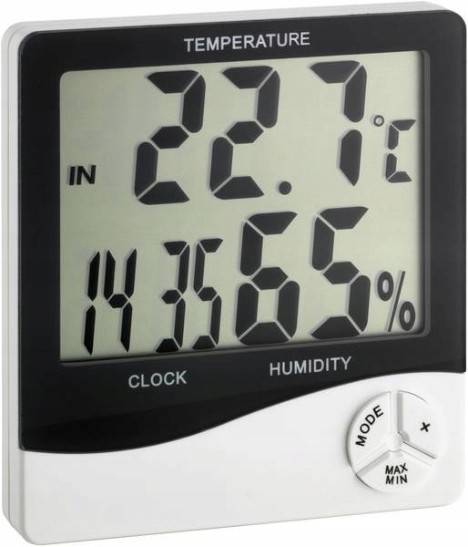 - памʼять хв./Макс.температура: пристрій записує і відображає найвищу і найнижчу виміряну температуру, що допомагає контролювати зміну клімату.Чи>