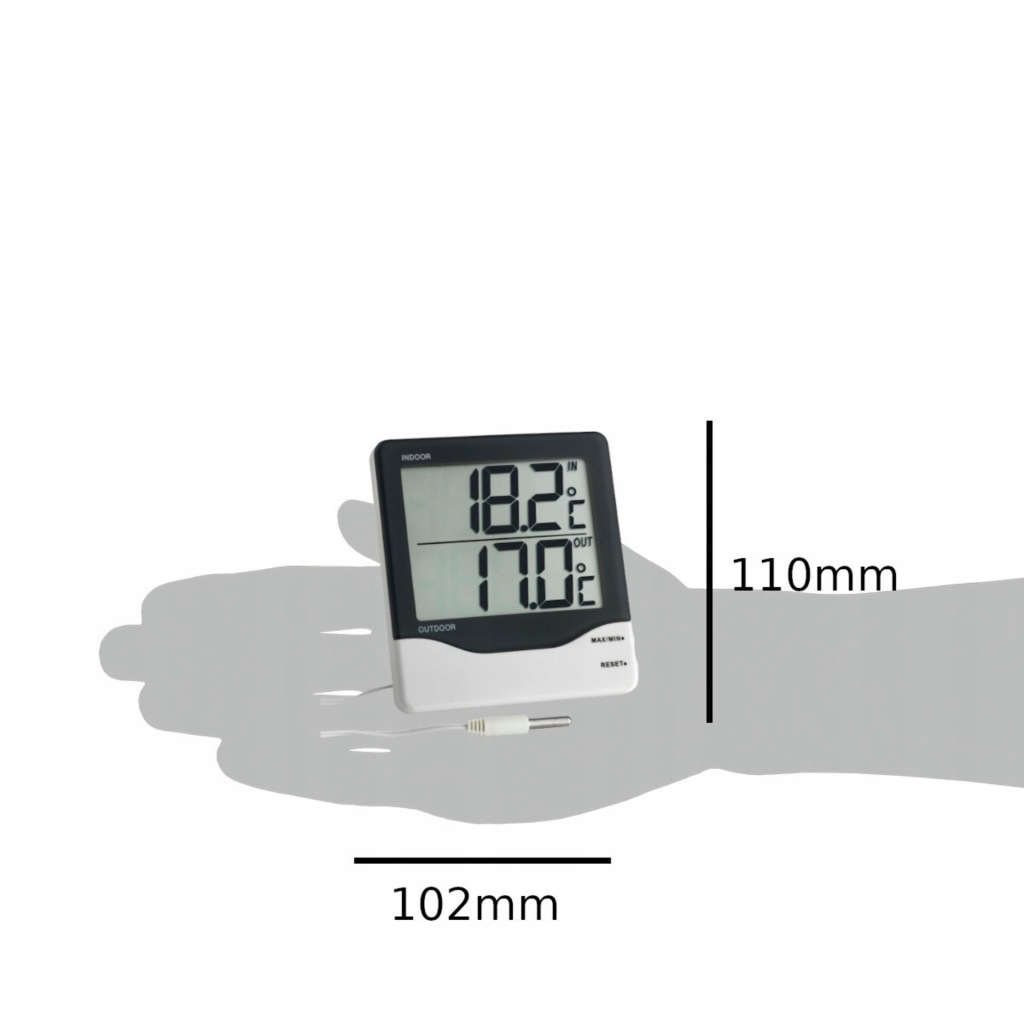 TFA 30.1011 K-це надійний цифровий термометр для приміщень і вулиці, який поєднує в собі точне вимірювання температури з простотою використання і функціональністю. Ідеально підходить для моніторингу умов будинку, офісу або інших важливих місць, це відмінний інструмент для тих, хто піклується про оптимальні погодні умови. Завдяки додатковому запису мінімальних і максимальних значень і атмосферостійкому зовнішньому датчику цей термометр є універсальним і надійним пристроєм для повсякденного використання.
