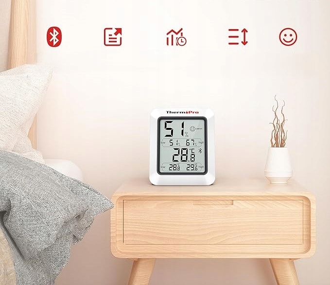 ✅ простота моніторингу : додаток ThermoPro дозволяє відстежувати температуру і вологість без необхідності реєстрації.