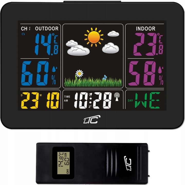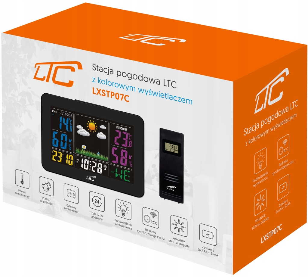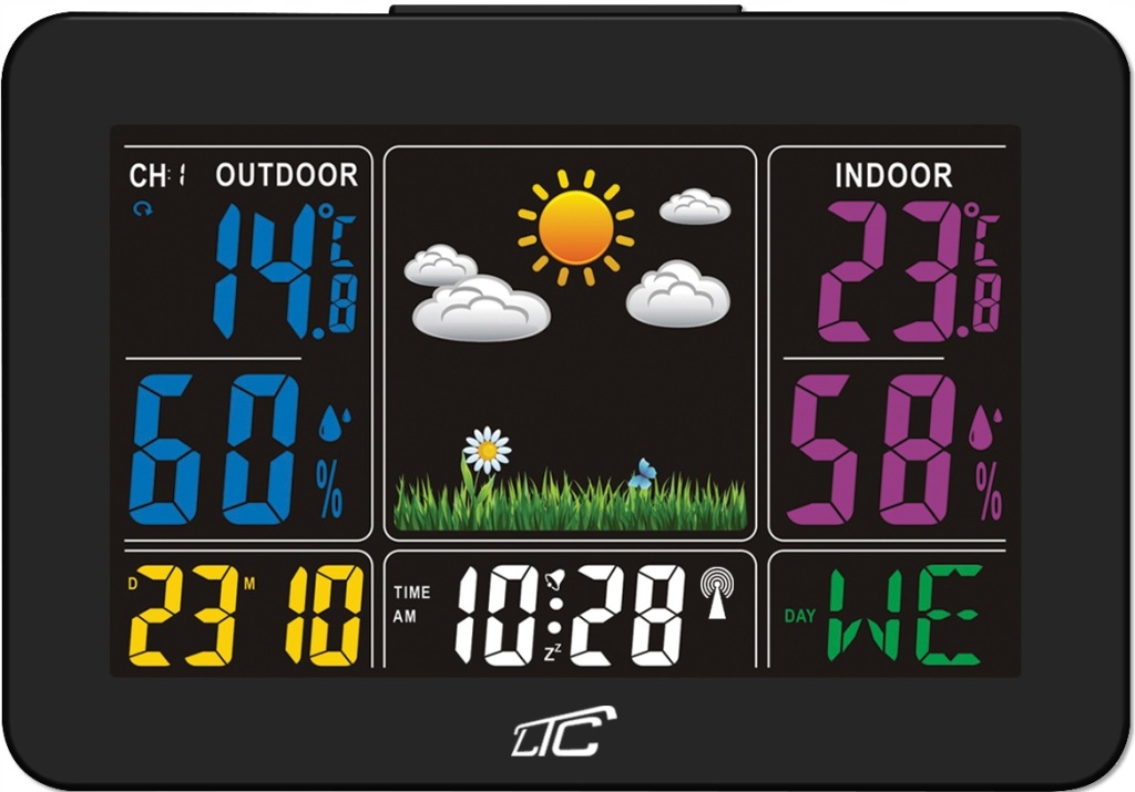 дисплей метеостанції LTC представляє повний набір відповідної інформації. Користувач має доступ до поточного часу з можливістю вибору 12 - або 24-годинного формату та відображення поточного року, дня та місяця. Крім того, на екрані відображаються вимірювання температури як всередині приміщення, так і з зовнішнього датчика. Метеостанція оснащена функціями будильника і повтору, що підвищує її функціональність. Дисплей з підсвічуванням забезпечує чіткі показання навіть в умовах обмеженого освітлення. Додатковою перевагою є Індикатор 8 фаз місяця, який дозволяє відстежувати зміни фаз Місяця.