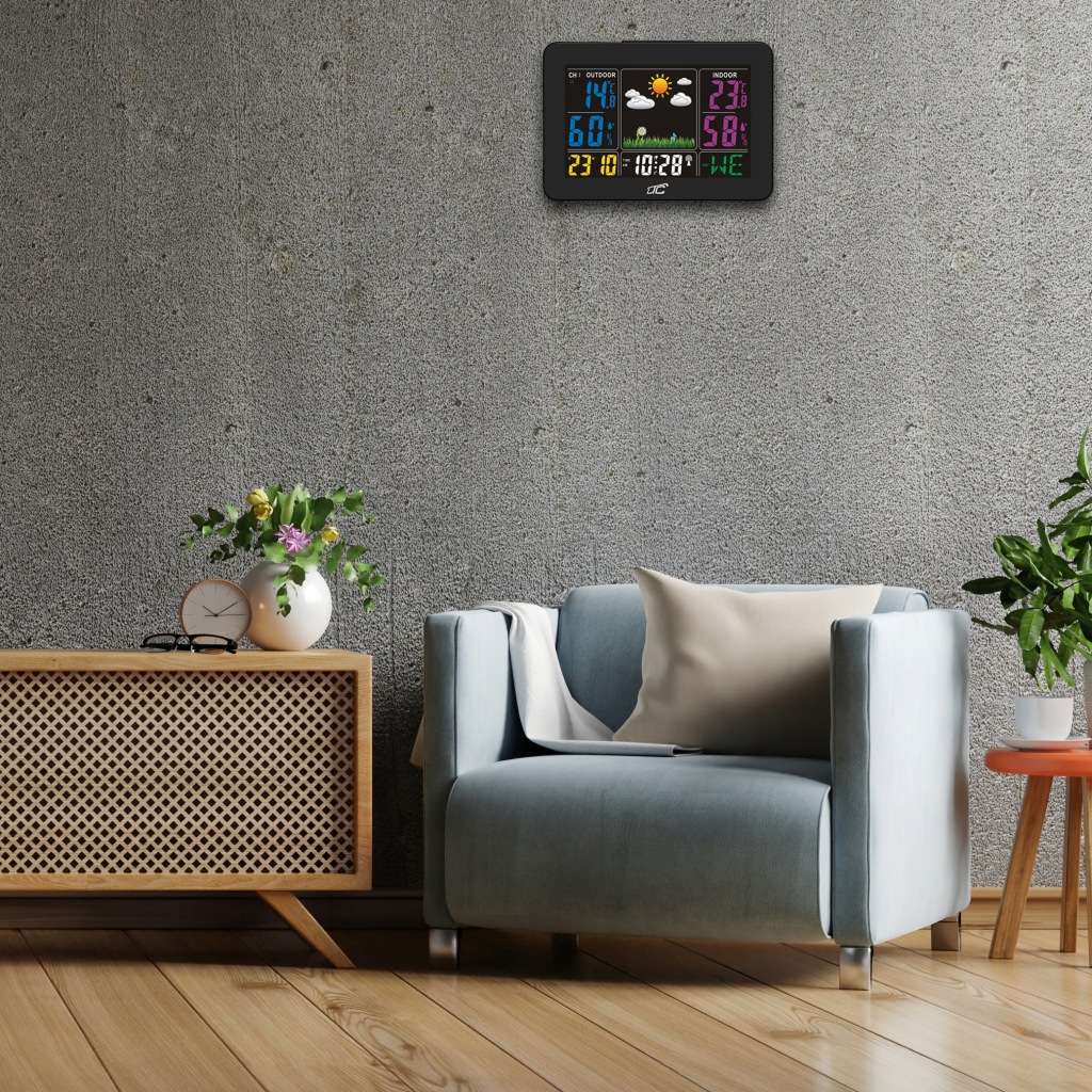 метеостанція з чітким дисплеєм і вимірюванням температури. Цей пристрій відрізняється винятковою точністю вимірювань, низьким споживанням енергії, високою якістю виготовлення і сучасним і естетичним дизайном.