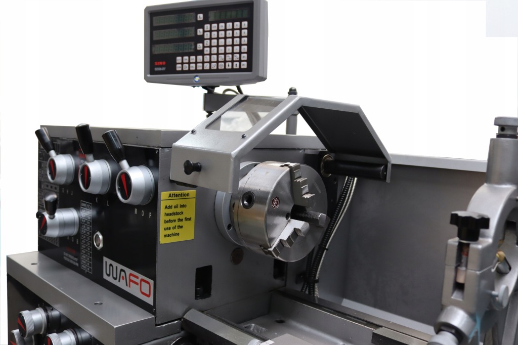 токарний верстат оснащений цифровою індикацією трьох осей , що значно підвищує точність і контроль процесу обробки. Вага машини 1060 кг гарантує стабільність під час роботи, зводячи до мінімуму вібрацію і забезпечуючи довговічність навіть при тривалій експлуатації.