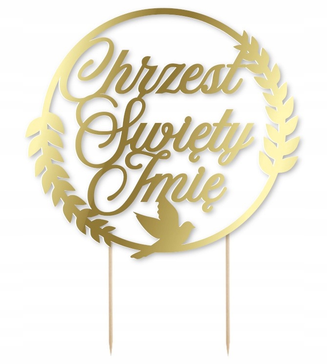 Топпер хрещення Святий + ім`я в колі злотий торт прикраса хрещення Святий
