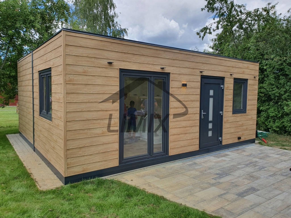 • підлога: сендвіч-панель з пінополістирольним сердечником товщиною 100 мм, термічною проникністю 0,38 Вт/м2К, додатково посилена OSB і закінчена облицювання з ПВХ