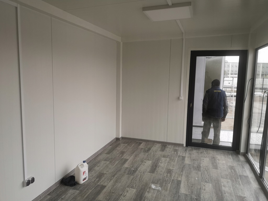 - підлога:сендвіч-панель з поліуретановим сердечником товщиною 100 мм 100 мм, теплова діелектрична проникність 0,28 Вт/м2К додатково посилена OSB і закінчена облицювання ПВХ