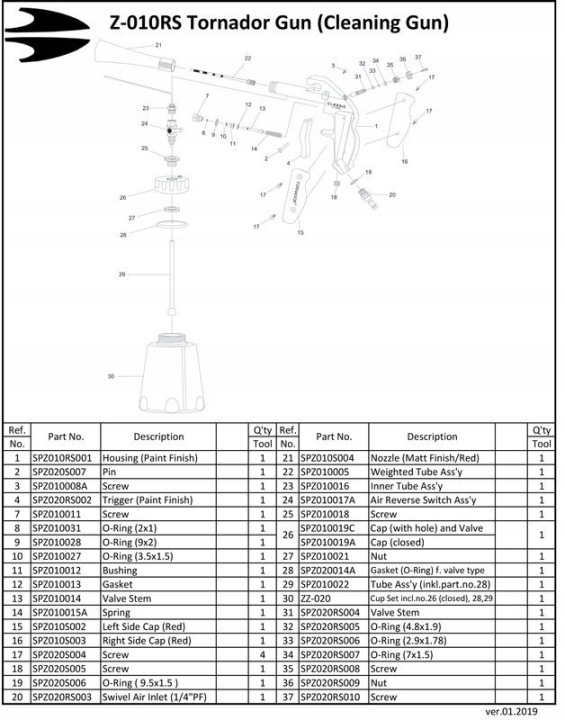з новим Tornador Classic Z - 010rs досягається задовільний результат в процесі очищення вже при тиску 6-9 бар. Пістолет TORNADOR BLACK працює навіть з поршневим компресором потужністю 240 В -2,2 кВт з мінімальною продуктивністю 270 л/хв.Таким чином, Tornador Black Z-010rs стає відмінним пристроєм для мобільної роботи.