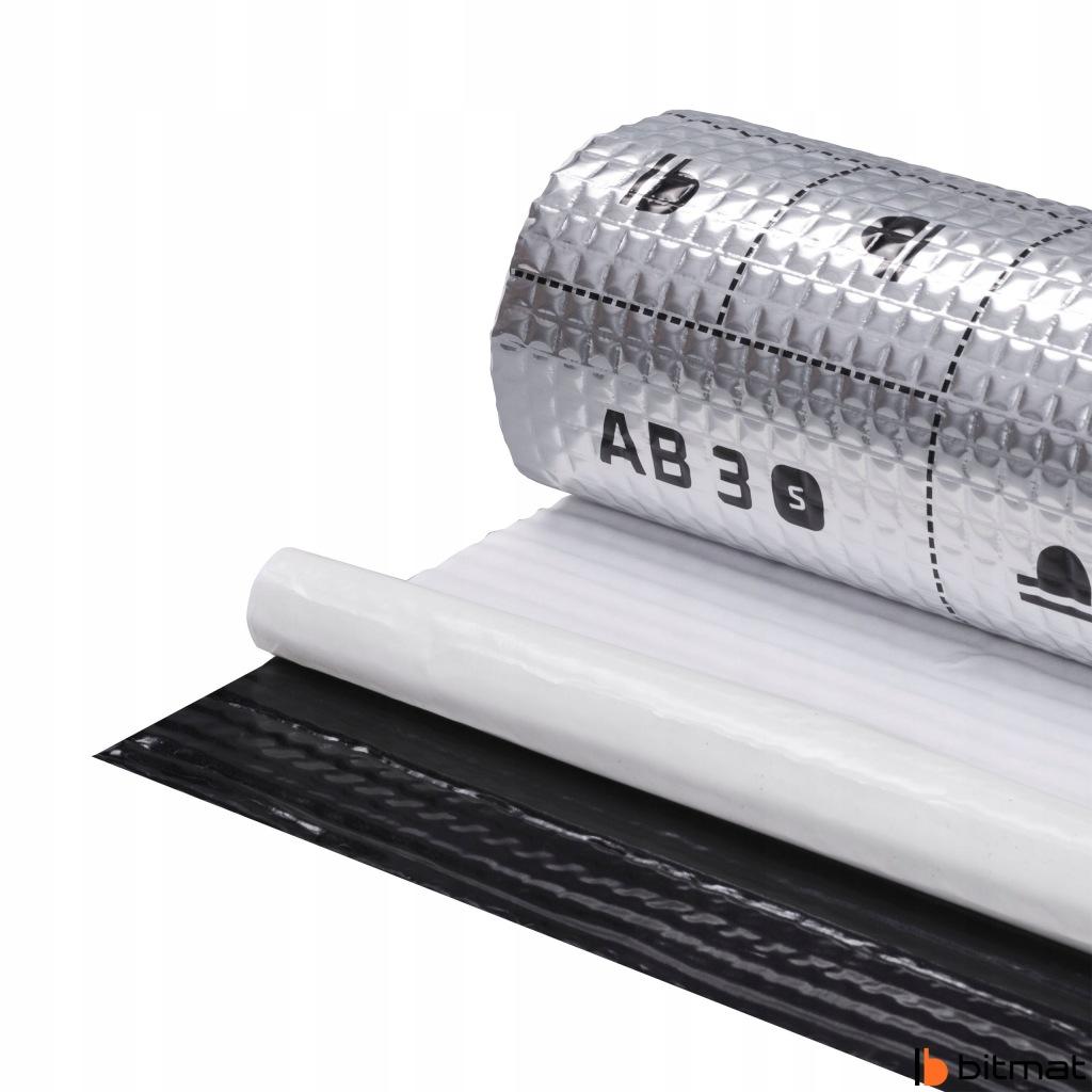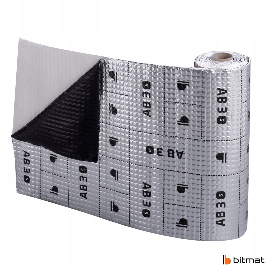 бутиловий мат AB-3s 3 мм використовується для звукоізоляції легкових автомобілів, мікроавтобусів і спеціалізованих транспортних засобів, наприклад, автобудинків. Продукт складається з високоякісної бутилової маси з високою щільністю і шару холодного гнутого алюмінію, який додатково працює термічно.