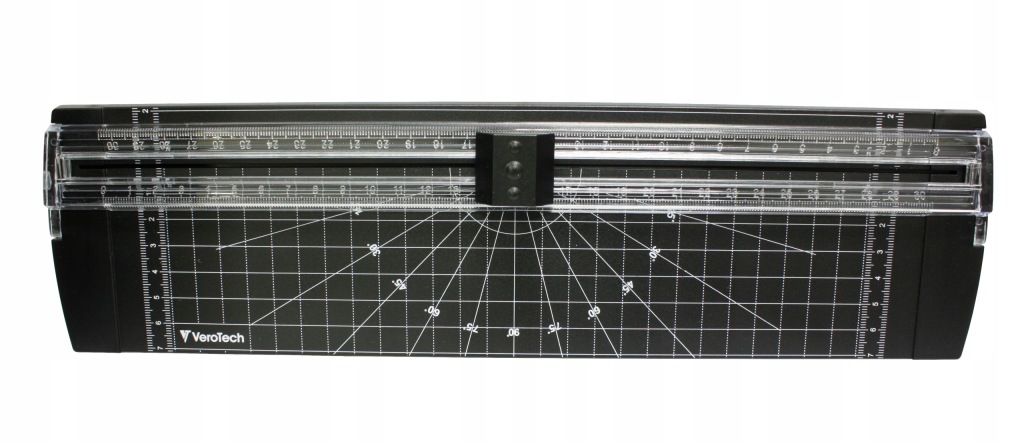 тример марки VeroTech-це простий пристрій, призначений для різання документів і фотографій формату A4. Він має стільницю з маркуванням форматів і шкалу в сантиметрах. Дозволяє розрізати до 5 аркушів паперу один раз.