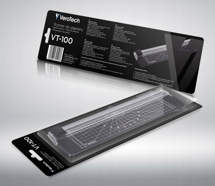 тример для паперу VeroTech - Це простий пристрій, призначений для різання документів, фотографій і т.д. дозволяє розрізати до 5 аркушів паперу за один раз. Він має стільницю, за допомогою якої Ви можете легко виміряти вирізаний папір. Продукт розроблений з урахуванням формату А4, але працює так само добре при менших розмірах. Робота з VT-100 повністю безпечна, а його положення при різанні залишається стабільним. Пристрій легкий, тому Ви можете без проблем переміщати його з місця на місце.