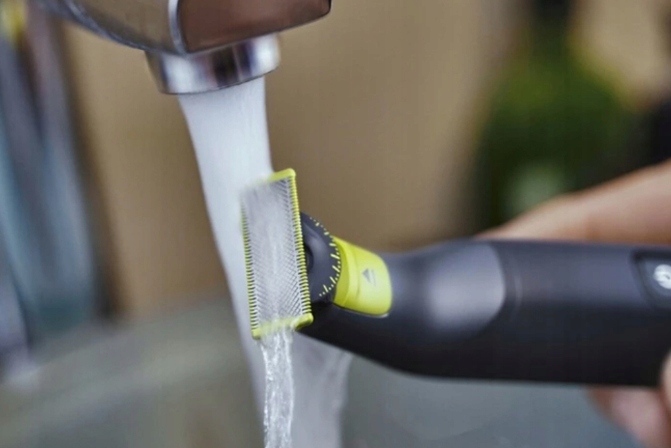 ✅ бритва OneBlade є водонепроникною, ви можете використовувати її вологою або сухою. Пристрій можна швидко і легко очистити, промивши його під проточною водою.