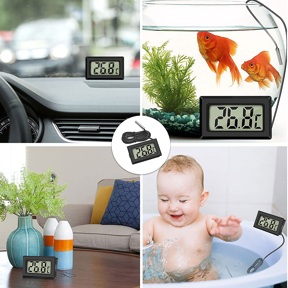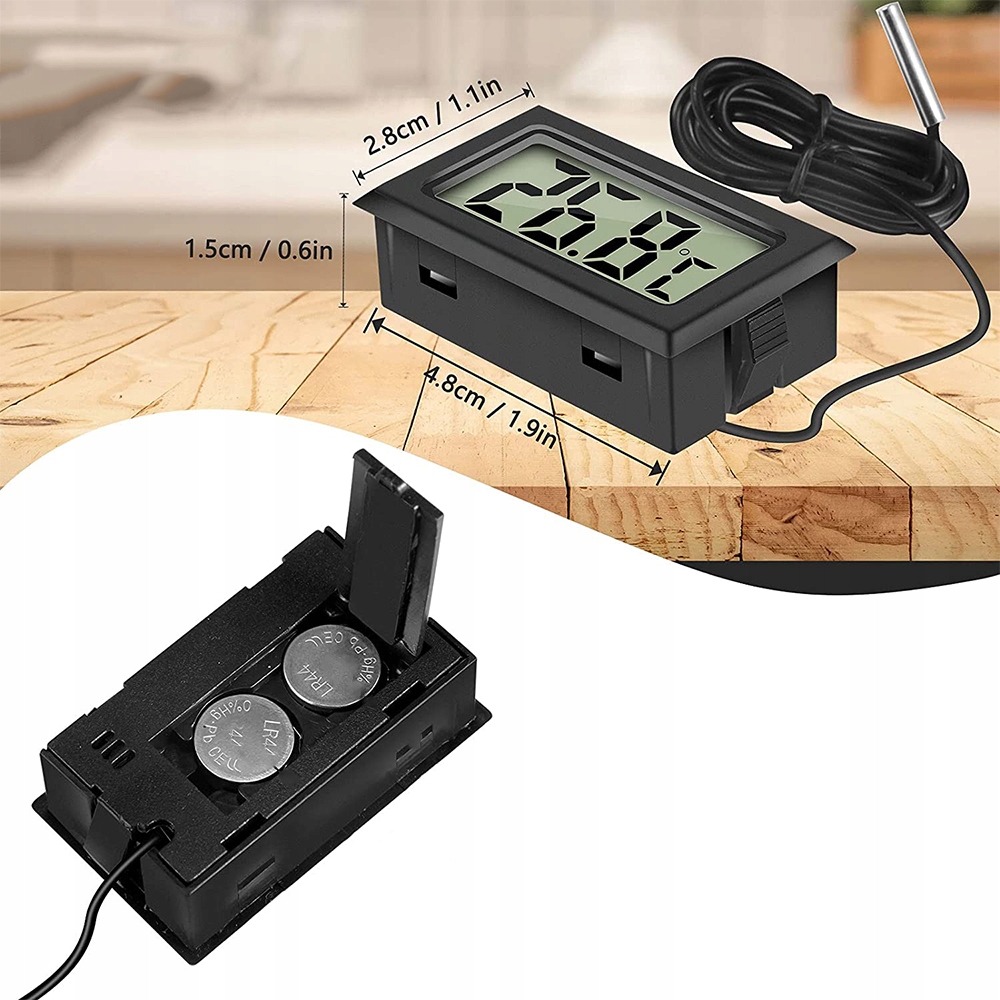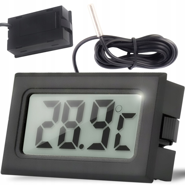 цифровий термометр ідеально підійде для вашого будинку, квартири, а також саду. Він був оснащений зондом з проводом, він дозволить вимірювати температуру не тільки за вікном, але і в акваріумах, холодильнику, морозильній камері, коптильні або теплиці. Зонд є водонепроникним, його діапазон вимірювання становить від -50 ° C до 110°C. Корпус термометра має спеціальні ніжки, які утримують його в отворі, наприклад, в кришці акваріума. Крім того, він був оснащений легко читаним РК-дисплеєм.