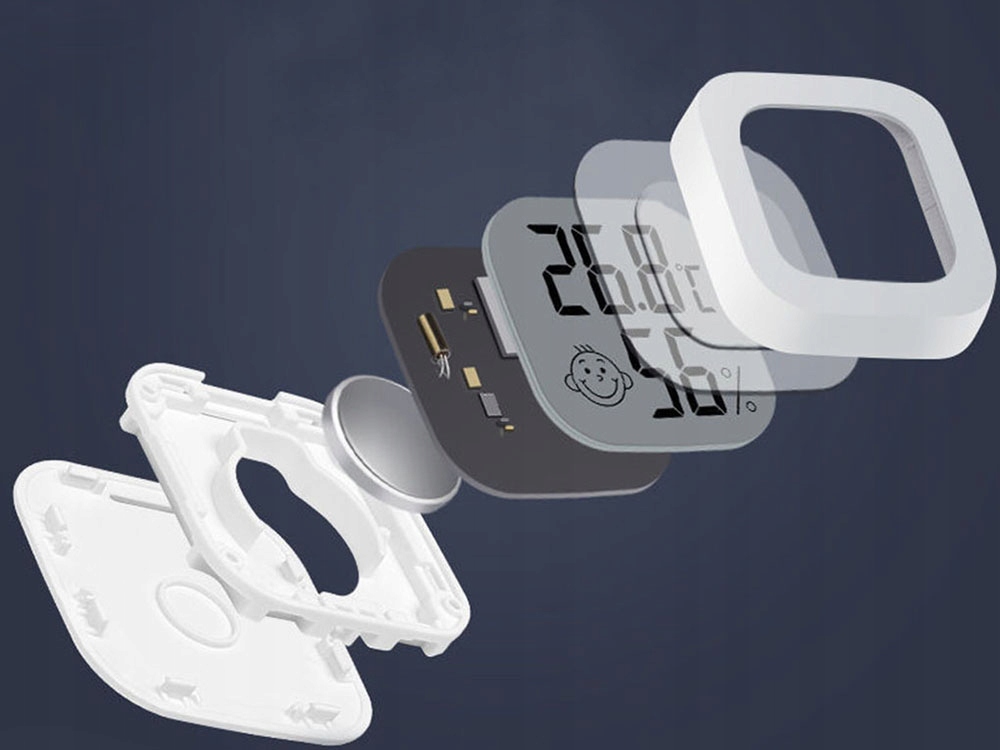 сучасна метеостанція в стильномудизайні, прекрасно вписується в простір будь-якої кімнати . Його можна приклеїти в будь-якому місці будинку за допомогою монтажної наклейки, що входить в комплект поставки. пристрій буде корисно в багатьох будинках для вимірювання вологості повітря.