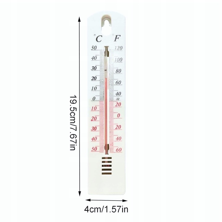 En універсальний термометр - відмінний вибір для моніторингу температури як зовні, так і всередині. Ідеально підходить для використання в саду, на терасі, балконі або в приміщенні, він буде працювати в будь-якому просторі, де точне вимірювання температури має важливе значення. Його компактні розміри (19,5 x 4 см) дозволяють легко монтувати в різних місцях, а читається шкала з діапазонами°c і°f забезпечує швидке і точне зчитування.