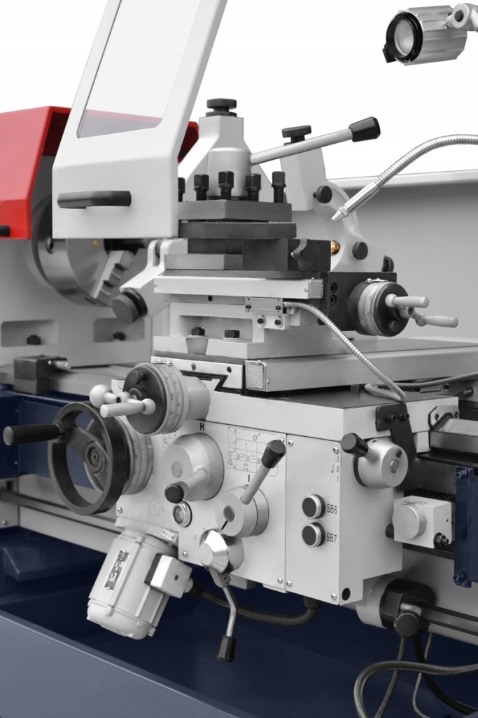 - оснащений свинцевим гвинтом і тяговим валом для токарної обробки різьби, автоматичної поздовжньої і поперечної подачі.