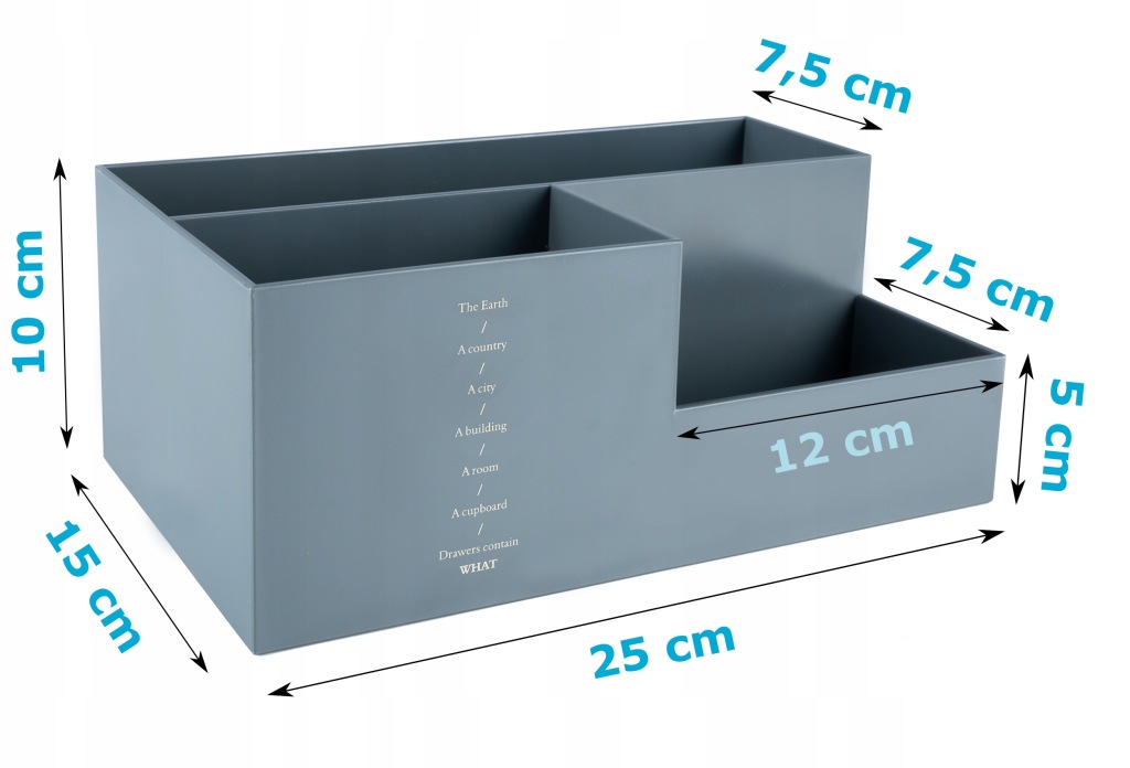 цей елегантний контейнер в модній сірій колірній гамі не тільки відмінно виглядає, але, перш за все, полегшує підтримання порядку в офісному приміщенні, на столі, в шафі або комоді.