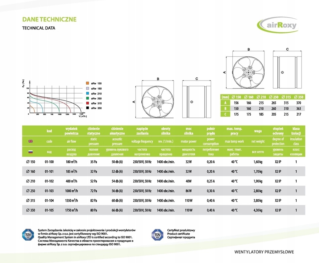 професійний повітропровід 150 мм airroxy, що забезпечує продуктивність 180 м3 / ч.ідеально підходить для приміщень з високими вимогами до вентиляції. Міцний корпус з оцинкованої сталі і міцна конструкція забезпечують ефективну вентиляцію. Відмінний вибір для промислового застосування, забезпечуючи високий статичний тискі захист від капаючої води . Для тих, хто хоче Висока якість вентиляції.
