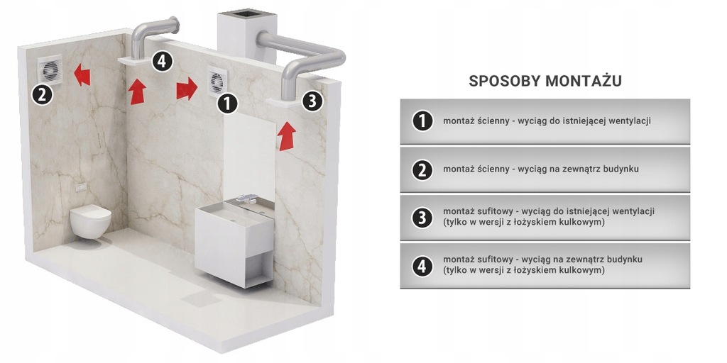 - розташування вентилятора можна налаштувати відповідно до конкретних потреб, наприклад, поруч з джерелом вологи або джерелом запаху.