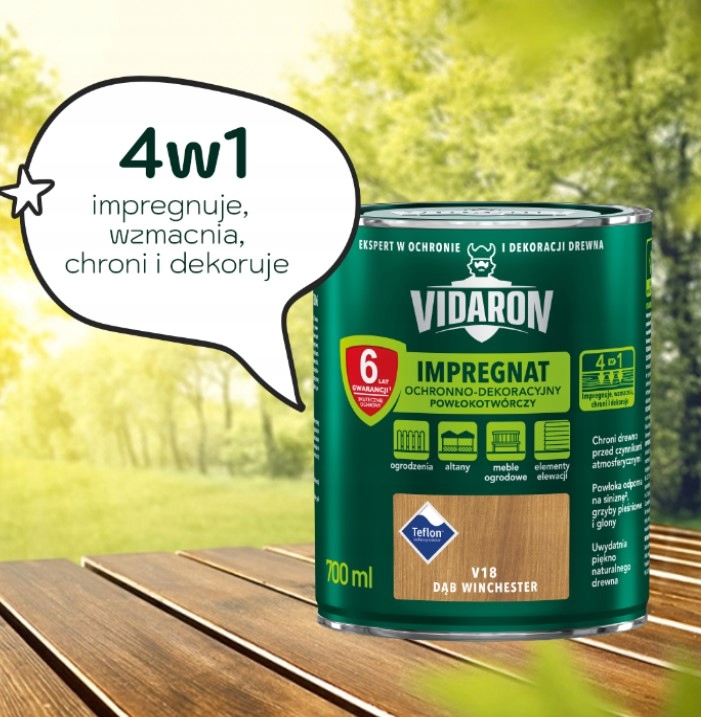 крім того,утворює на поверхні деревини захисне покриття, стійке до біокорозії - синці, цвілеві грибки і водорості . У поєднанні з безбарвним захисним просоченням VIDARON забезпечує повний захист деревини.