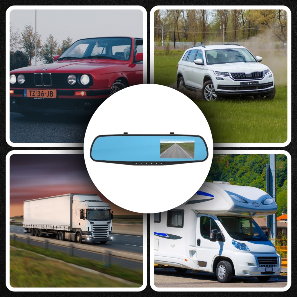 відеореєстратор дзеркало з камерою FULL HD – 32GB, Реверсивний, передній і задній