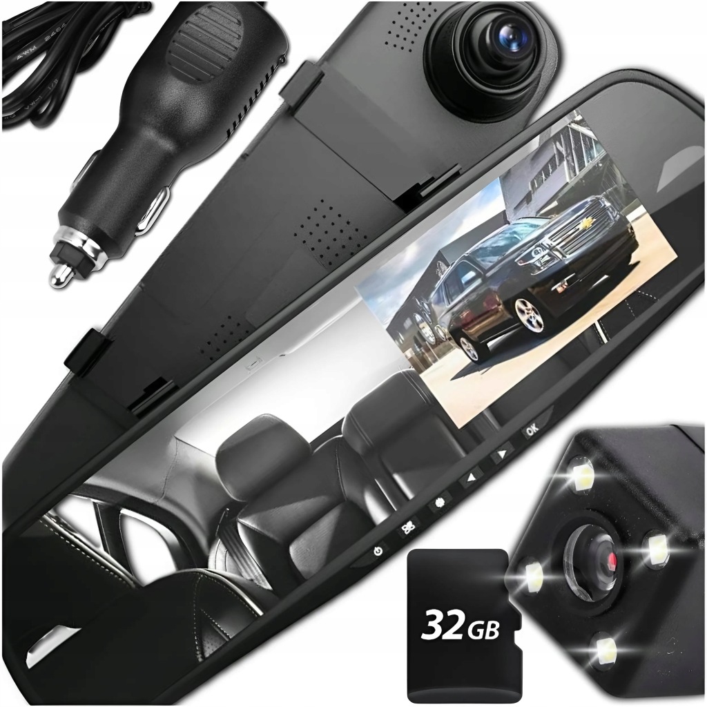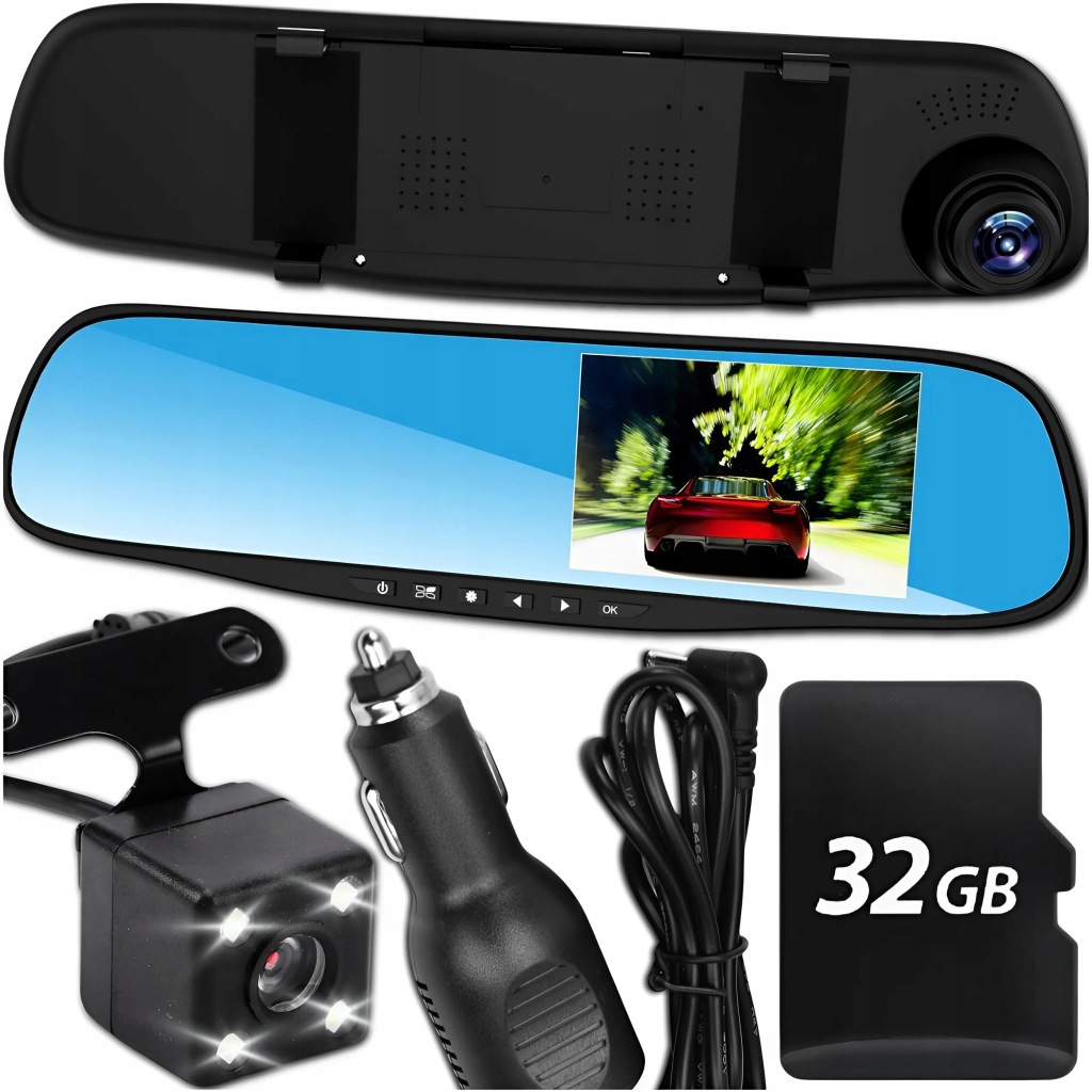 ВІДЕОРЕЄСТРАТОР ДЗЕРКАЛО АВТОМОБІЛЯ КАМЕРА FULL HD 32 ГБ ЗАДНЬОГО ВИДУ СПЕРЕДУ І ЗЗАДУ