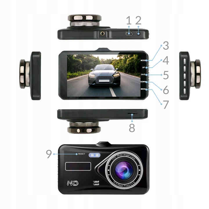 ✴️Мова Польська*️⃣ фронтальна Камера ✴️ задня Камера (заднього виду) *️⃣ Легкий і швидкий монтаж ✴️ Просте управління *️⃣ Широкий кут огляду 170° ✴️ відео у форматі FULL HD 1080P *️⃣ Вид ззаду ✴️ Запис циклу *️⃣ Великий і чіткий екран ✴️ Камера *️⃣ нічний Режим