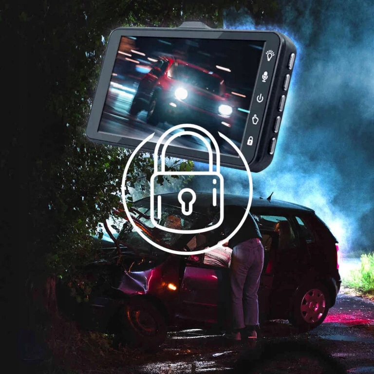 ☝G-Sensor у момент різкого гальмування або аварії автоматично захищає записаний матеріал від видалення. Удар, удар або раптовий ривок автомобіля активує функцію G-sensor, і запис постійно зберігається на карті памʼяті (за 10 секунд до і через 20 секунд після події).