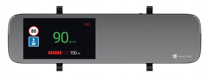 NAVITEL MR450 GPS оснащений камерою заднього виду, яка записує у форматі Full HD. Кут огляду обʼєктива становить 100°. Кріпиться до заднього скла автомобіля за допомогою стрічки 3м.цифровий спідометр та попередження про швидкісну камеру