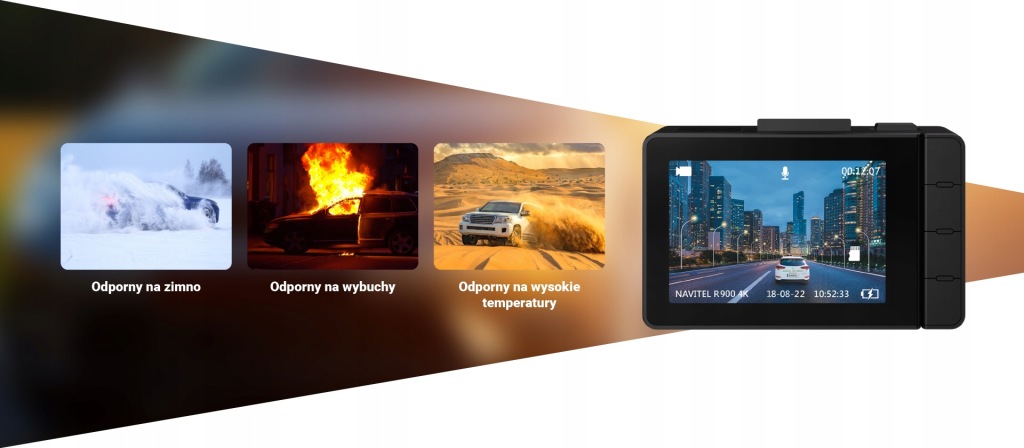 відеореєстратор Navitel R900 4k записує високоякісне, чітке і докладний відео в дозволі Ultra HD 4k 3840x2160p зі швидкістю 30 кадрів в секунду. Це дозволяє читати ключову інформацію, таку як дорожні знаки або номерні знаки транспортних засобів. Камера оснащена високоякісним оптичним сенсором SONY 415 STARVIS і 7-шаровим скляним обʼєктивом з ІЧ-фільтром. Завдяки їм він фіксує важливі деталі як в умовах слабкого, так і яскравого освітлення.